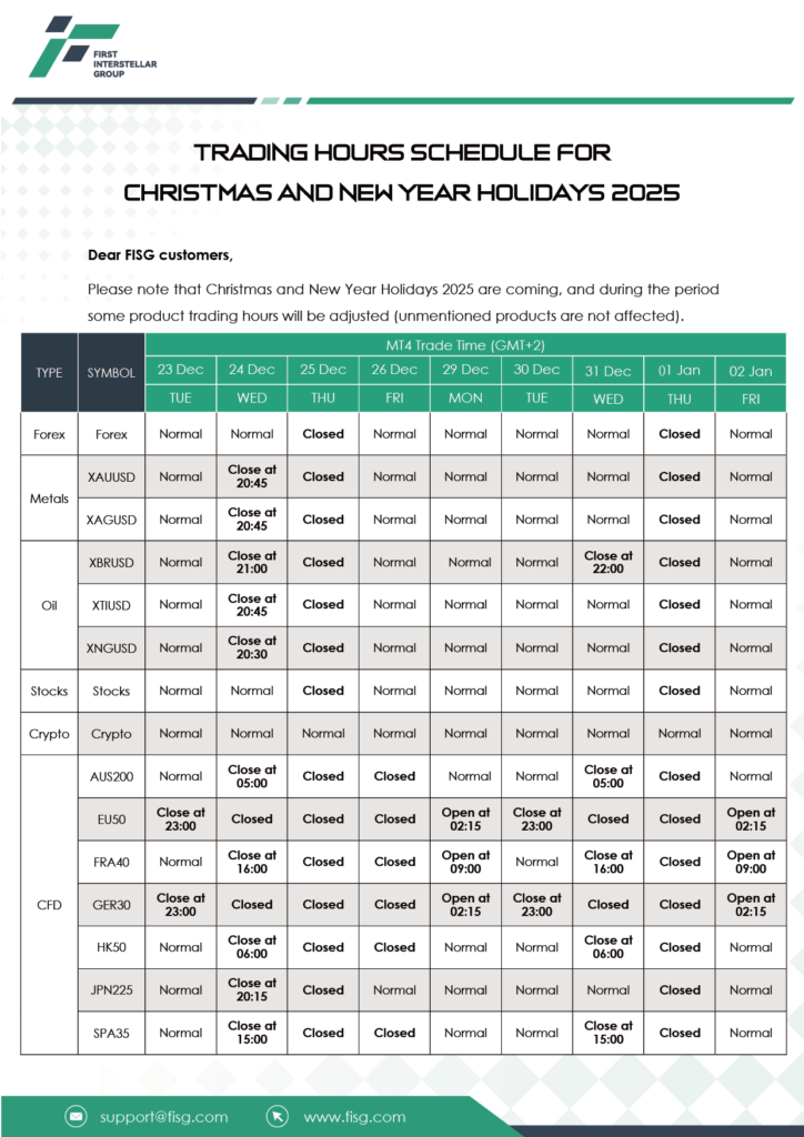 Trading hours schedule For Christmas AND New Year Holidays 2025