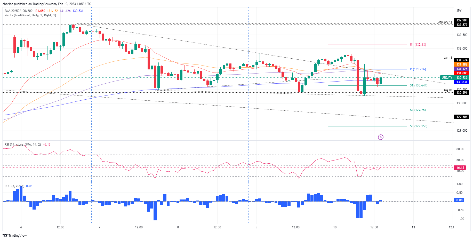 Share: Falling wedge USD/JPY dalam grafik 1-jam dibatalkan oleh penembusan harga di seputar berita Ueda. Analisis Harga USD/JPY: Jangka panjang masih bias ke bawah kecuali menembus resistance di sekitar 133,00. USD/JPY tetap tertekan oleh rumor bahwa Kazuo Ueda akan ditunjuk sebagai Gubernur Bank of Japan (BoJ) yang baru, membuat USD/JPY menyelam ke terendah mingguan 129,79. Namun demikian, USD/JPY pulih, diperdagangkan di sekitar 130,90, sedikit di atas Exponential Moving Average (EMA) 20-hari. Dari sudut pandang grafik harian, USD/JPY tetap bias ke bawah, tetapi pembeli mengklaim kembali EMA 20-hari di 130,72 dapat memainkan level psikologis 131,00. Relative Strength Index (RSI) menunjukkan kemungkinan kelanjutan bearish, sementara Rate of Change (RoC) bergeser netral. Dalam perdagangan harian, grafik satu-jam USD/JPY menggambarkan pasangan mata uang ini sebagai bias ke bawah. Pada analisis hari Kamis, saya menulis, "formasi falling wedge, mengindikasikan kelanjutan bullish, yang dapat mengangkat harga menuju 131,60 dan tertinggi 11 Januari di 132,87," dan menambahkan sinyal beragam antara RSI dan RoC, mengindikasikan bahwa kehati-hatian dibenarkan. Oleh karena itu, berita BoJ membatalkan pola grafik dan membuka kemungkinan penurunan lebih lanjut. Agar USD/JPY melanjutkan bias ke atasnya, ia harus melewati tertinggi hari di 131,87, diikuti oleh tertinggi mingguan di 132,90. Di sisi lain, dan dalam skenario yang paling mungkin, USD/JPY dapat menguji kembali terendah minggu ini. Oleh karena itu, support pertama USD/JPY adalah pivot harian S1 di 130,64. Penembusannya akan mengekspos level psikologis 130,000, diikuti oleh terendah minggu/sesi di 129,79. Grafik Satu Jam USD/JPY level-level teknis USD/JPY Tinjauan Harga terakhir hari ini 130.94 Perubahan harian hari ini -0.68 Perubahan harian hari ini % -0.52 Pembukaan harian hari ini 131.62 Tren SMA 20 Harian 129.91 SMA 50 Harian 132.33 SMA 100 Harian 138.32 SMA 200 Harian 136.82 Level Tinggi Harian Sebelumnya 131.83 Rendah Harian Sebelumnya 130.34 Tinggi Mingguan Sebelumnya 131.2 Rendah Mingguan Sebelumnya 128.08 Tinggi Bulanan Sebelumnya 134.78 Rendah Bulanan Sebelumnya 127.22 Fibonacci Harian 38,2% 131.26 Fibonacci Harian 61,8% 130.91 Pivot Point Harian S1 130.7 Pivot Point Harian S2 129.78 Pivot Point Harian S3 129.21 Pivot Point Harian R1 132.18 Pivot Point Harian R2 132.75 Pivot Point Harian R3 133.67 Share: Feed news