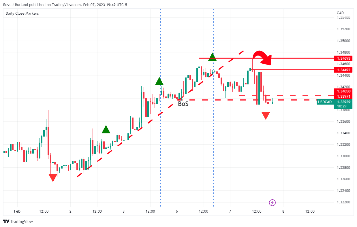 Share: USD/CAD menambah penurunan besar dan turun kembali mendekati terendah mingguan. Harga minyak bullish, laporan tenaga kerja Kanada yang optimis mendorong Loonie dan memberikan tekanan. Ekspektasi The Fed hawkish, kekhawatiran resesi mendukung USD dan akan membatasi penurunan. Pasangan USD/CAD melanjutkan penurunan dalam perdagangan harian dari sekitar tertinggi mingguan, di sekitar wilayah 1,3475 dan terus turun sepanjang awal sesi Amerika Utara. Momentum ke bawah mempercepat laju sebagai reaksi terhadap data ketenagakerjaan Kanada yang optimis dan menyeret harga spot ke area 1,3370, atau ujung bawah kisaran mingguan. Statistik Kanada melaporkan bahwa jumlah orang yang bekerja naik 150 ribu pada bulan Januari, bahkan melampaui prakiraan paling optimis. Selain itu, tingkat pengangguran tetap stabil di 5% dibandingkan ekspektasi kenaikan moderat ke 5,1%. Ini, bersama dengan sentimen bullish di sekitar harga minyak mentah, mendukung Loonie yang terkait dengan komoditas dan memberikan tekanan berat pada pasangan USD/CAD. Dolar AS, di sisi lain, berdiri tegak di dekat tertinggi satu bulan dan seharusnya membatasi penurunan, setidaknya untuk saat ini. Terhadap latar belakang komentar hawkish beberapa anggota FOMC baru-baru ini, nada yang lebih lemah di sekitar pasar ekuitas – di tengah membayanginya risiko resesi – terlihat mendukung safe-haven Dolar AS. Ini, bersama dengan prospek divergensi kebijakan Fed-BoC, dapat memberikan dukungan kepada pasangan USD/CAD. Investor tampak yakin The Fed akan tetap berpegang pada sikap hawkish untuk menjinakkan inflasi. Sebaliknya, Bank of Canada diprakirakan menjadi bank sentral besar pertama yang menghentikan siklus pengetatan kebijakan menyusul delapan kenaikan suku bunga dalam 11 bulan terakhir. Ini, pada gilirannya, mendukung prospek munculnya beberapa aksi beli di sekitar pasangan USD/CAD, yang membenarkan kehati-hatian bagi pedagang bearish. level-level teknis USD/CAD Tinjauan Harga terakhir hari ini 1.3368 Perubahan harian hari ini -0.0093 Perubahan harian hari ini % -0.69 Pembukaan harian hari ini 1.3461 Tren SMA 20 Harian 1.3388 SMA 50 Harian 1.3495 SMA 100 Harian 1.3536 SMA 200 Harian 1.3234 Level Tinggi Harian Sebelumnya 1.3463 Rendah Harian Sebelumnya 1.3373 Tinggi Mingguan Sebelumnya 1.3472 Rendah Mingguan Sebelumnya 1.3262 Tinggi Bulanan Sebelumnya 1.3685 Rendah Bulanan Sebelumnya 1.33 Fibonacci Harian 38,2% 1.3429 Fibonacci Harian 61,8% 1.3407 Pivot Point Harian S1 1.3401 Pivot Point Harian S2 1.3342 Pivot Point Harian S3 1.3311 Pivot Point Harian R1 1.3492 Pivot Point Harian R2 1.3523 Pivot Point Harian R3 1.3583 Share: Feed news