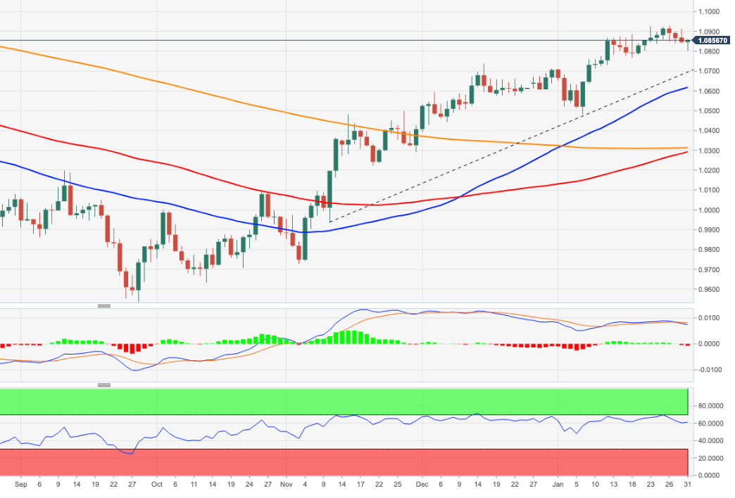 EUR/USD saat ini membalikkan kenaikan awal dan kembali ke 1,0850. Non-farm Payrolls AS mengejutkan (sebagian besar) ke sisi atas pada bulan Januari. Tingkat pengangguran turun ke 3,4%. EUR/USD berada di bawah tekanan turun lebih lanjut dan dengan cepat melepaskan optimisme awal, kembali ke pertengahan 1,0800-an setelah laporan lapangan pekerjaan AS yang luar biasa pada hari Jumat. EUR/USD: Kenaikan tampak terbatas di dekat 1,1030 sejauh ini EUR/USD mendapat tekanan jual lebih lanjut setelah rilis Nonfarm Payrolls menunjukkan ekonomi AS menambah 517 ribu lapangan pekerjaan selama bulan Januari, sebagian besar melampaui estimasi awal untuk kenaikan 185 ribu lapangan pekerjaan. Selain itu, data bulan Desember juga direvisi naik menjadi 260 Ribu (dari 223 Ribu). Data lebih lanjut menunjukkan Tingkat Pengangguran turun menjadi 3,4% dan Pendapatan Rata-Rata Per Jam – proksi inflasi melalui upah – naik 0,3% MoM dan 4,4% dari tahun sebelumnya. Selain itu, Tingkat Partisipasi naik sedikit ke 62,4% (dari 62,3). Di akhir sesi, perhatian akan tertuju pada rilis ISM Non-Manufaktur. Level-Level EUR/USD untuk Diperhatikan Sejauh ini, pasangan mata uang ini turun 0,37% di 1,0866 dan penembusan 1,0802 (terendah mingguan 31 Januari) akan menargetkan 1,0766 (terendah mingguan 17 Januari) dalam perjalanan menuju 1,0648 (SMA 55 hari). Di sisi lain, penghalang kenaikan terdekat berada di 1,1032 (tertinggi 2023 2 Februari) diikuti oleh 1,1100 (level angka bulat) dan akhirnya 1,1184 (terendah mingguan 31 Maret 2022).