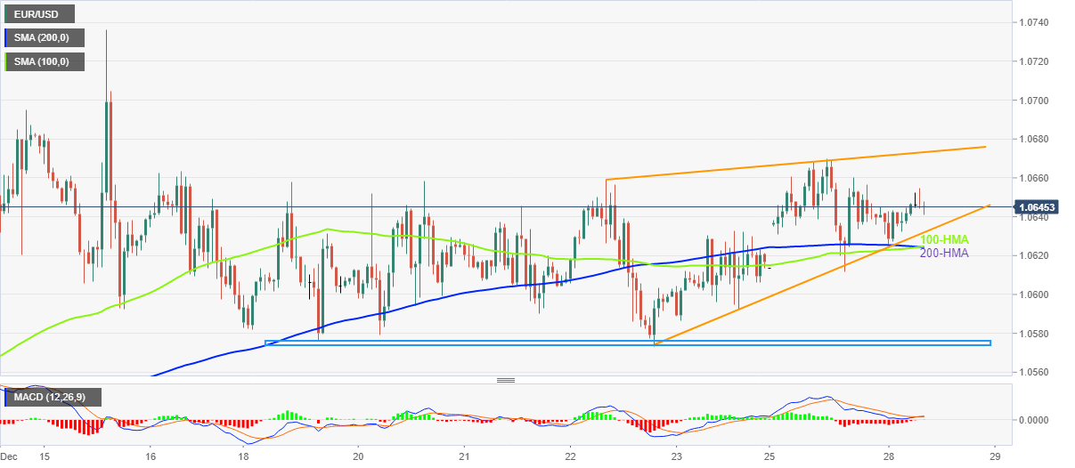 EUR/USD mengambil tawaran beli untuk membalikkan pullback hari sebelumnya di dalam formasi persegi panjang mingguan. Garis tren naik jangka pendek,bull...