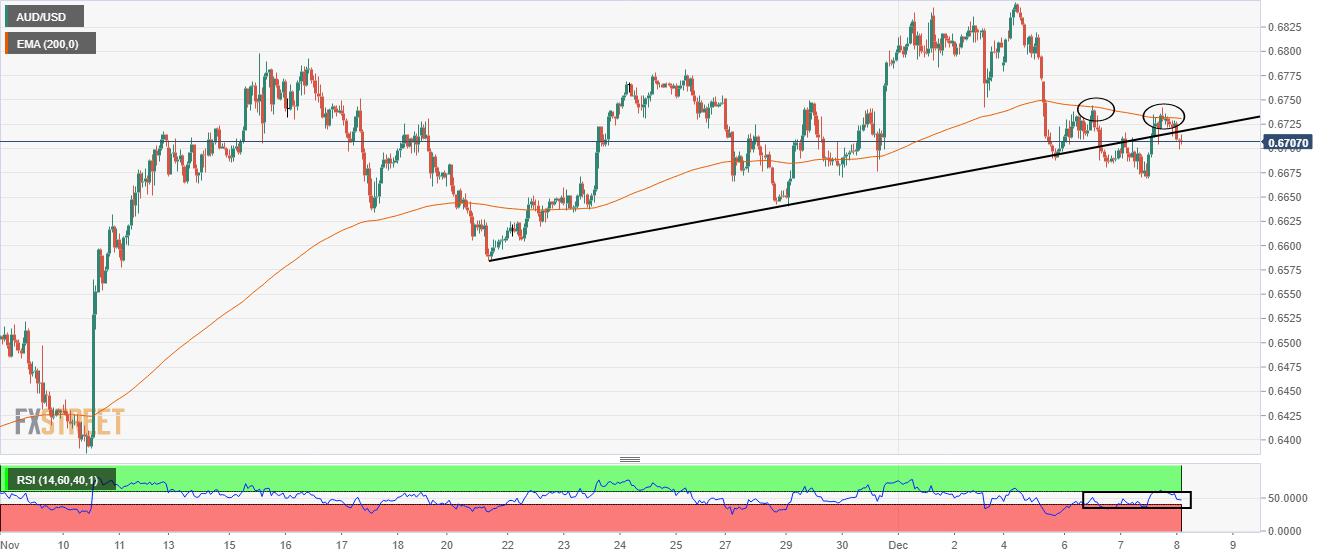 AUD/USD berusaha keras untuk menggeser profil perdagangannya di atas 0,6900 karena Indeks Dolar AS telah puliih. Dolar Australia gagal menguat meskipun data inflasi dan Penjualan Ritel Australia lebih tinggi dari yang diantisipasi. Eskalasi dalam inflasi dan permintaan ritel dapat memaksa RBA untuk memperketat kebijakan lebih lanjut. AUD/USD telah gagal bertahan di atas resistance terdekat 0,6900 meskipun inflasi Australia yang lebih baik dari yang diproyeksikan memberikan kekuatan pada Dolar Australia. Aset AUD ini telah merasakan panas karena Indeks Dolar AS (DXY) telah pulih pada awal perdagangannya. Indeks USD telah meregang mendekati resistance level angka bulat di 103,00 Kontrak berjangka S&P500 telah menyerahkan keuntungan yang tercatat di awal sesi Asia, menggambarkan penurunan selera risiko para investor. Selain itu, imbal hasil obligasi pemerintah 10-tahun AS menghadapi tekanan besar dan telah turun di bawah 3,60%. Di awal Asia, Dolar Australia menunjukkan volatilitas setelah rilis data inflasi dan Penjualan Ritel bulanan Australia. Biro Statistik Australia melaporkan inflasi bulanan pada 7,4% yang konsensus 7,3% dan rilis sebelumnya 6,9%. Selain itu, Penjualan Ritel bulanan (Nov) telah melonjak ke 1,4% terhadap proyeksi 0,6%. Hal ini dapat mengakibatkan keresahan bagi para pengambil kebijakan Reserve Bank of Australia (RBA) karena mereka mengerahkan 'darah dan keringat' untuk menjinakkan inflasi yang sehat. Sementara itu, para pelaku pasar terus membicarakan tentang pembukaan kembali Tiongkok setelah karantina yang membentang yang dipimpin oleh epidemi Covid-19. Para ekonom di JP Morgan berpandangan bahwa pembukaan kembali Tiongkok dari pembatasan Covid kemungkinan akan mendorong pertumbuhan ekonomi Australia sekitar 1,0%. Perlu dicatat bahwa Australia adalah mitra dagang utama Tiongkok dan prospek ekonomi di Tiongkok berdampak pada Dolar Australia. Minggu ini, Indeks Harga Konsumen (IHK) Amerika Serikat akan tetap menjadi sorotan. Sesuai konsensus, IHK utama akan turun ke 6,5% dari rilis sebelumnya sebesar 7,1% sementara inflasi inti yang tidak memasukkan harga makanan dan energi mungkin akan turun ke 5,7% versus rilis sebelumnya sebesar 6,0%. Level-Level Teknis AUD/USD Tinjauan Harga terakhir hari ini 0.6893 Perubahan harian hari ini 0.0000 Perubahan harian hari ini % 0.00 Pembukaan harian hari ini 0.6893 Tren SMA 20 Harian 0.6765 SMA 50 Harian 0.6704 SMA 100 Harian 0.6635 SMA 200 Harian 0.6839 Level Tinggi Harian Sebelumnya 0.6928 Rendah Harian Sebelumnya 0.686 Tinggi Mingguan Sebelumnya 0.6887 Rendah Mingguan Sebelumnya 0.6688 Tinggi Bulanan Sebelumnya 0.6893 Rendah Bulanan Sebelumnya 0.6629 Fibonacci Harian 38,2% 0.6886 Fibonacci Harian 61,8% 0.6902 Pivot Point Harian S1 0.6859 Pivot Point Harian S2 0.6826 Pivot Point Harian S3 0.6791 Pivot Point Harian R1 0.6928 Pivot Point Harian R2 0.6962 Pivot Point Harian R3 0.6996