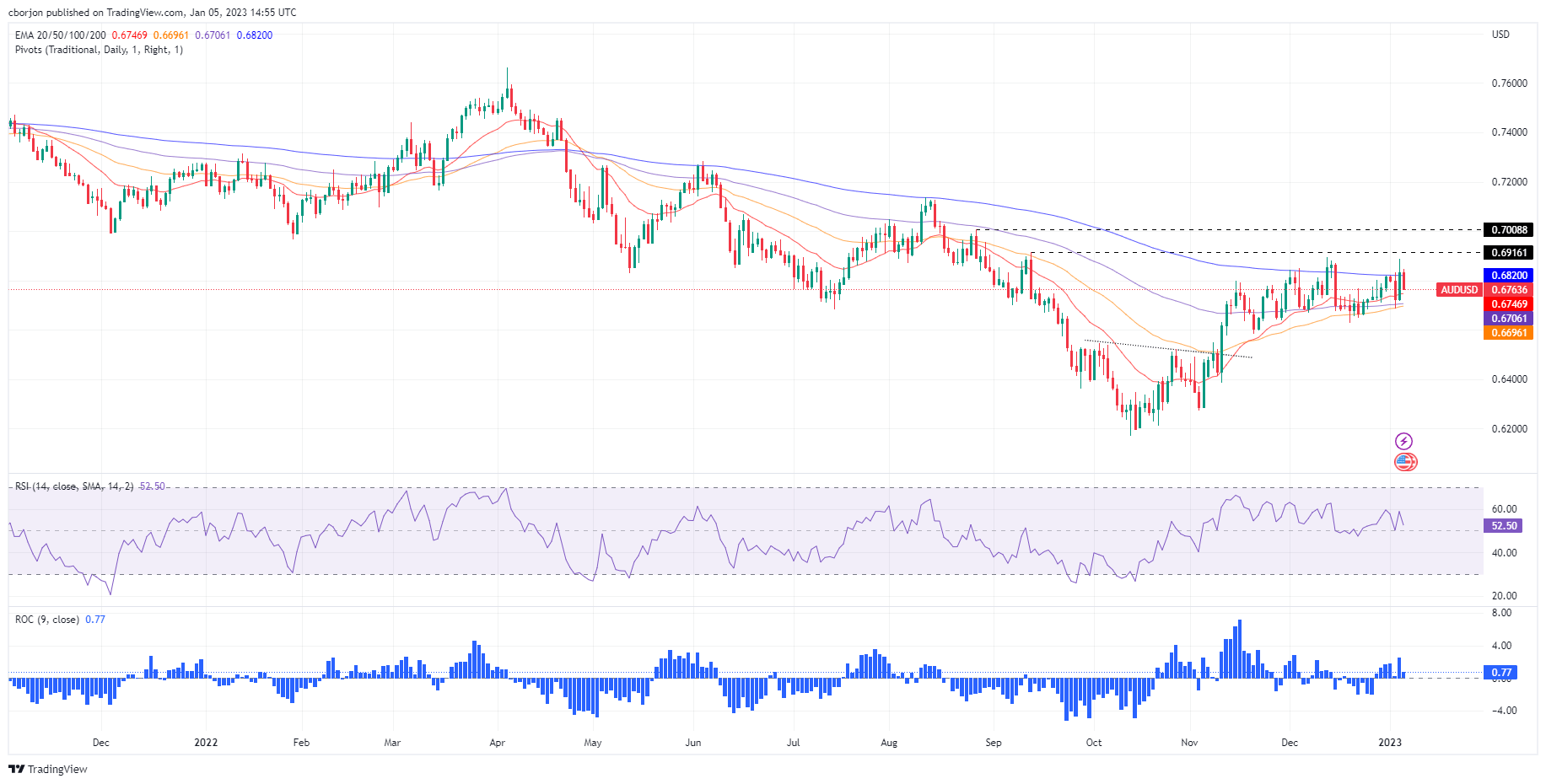 China's Securities Daily melaporkan pada hari Senin bahwa enam kota di Tiongkok mengumumkan target pertumbuhan PDB untuk tahun depan, dengan mayoritas menargetkan 5,5% hingga 7% dengan harapan bahwa perubahan dalam kebijakan pemerintah akan mengarah pada pemulihan ekonomi. Kutipan Utama Menurut statistik reporter yang tidak lengkap, pada 8 Januari, setidaknya enam kota termasuk Jinan, Qingdao, dan Changsha telah mengumumkan target pertumbuhan PDB mereka untuk tahun 2023, dan nilainya terkonsentrasi antara 5,5% dan 7%. "Dilihat dari sasaran pembangunan ekonomi 2023 yang ditentukan oleh berbagai tempat, mereka umumnya penuh percaya diri dalam pemulihan ekonomi." Reaksi Pasar Di tengah laporan optimis dari Tiongkok, AUD/USD bertahan di dekat level tertinggi empat bulan di sekitar 0,6900, naik 0,45% pada hari ini.