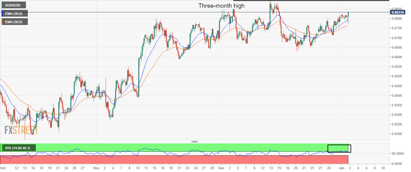 IMP Manufaktur Caixin Tiongkok untuk bulan Desember turun ke 49,0 dibandingkan prakiraan 48,8 dan 49,4 sebelumnya, menunjukkan bahwa pembatasan covid negara terus berdampak negatif pada output pada akhir tahun 2022. Ketika output turun pada tingkat yang lebih rendah dibandingkan dengan bulan November, total pesanan baru turun dengan laju yang lebih cepat. Wang Zhe, Ekonom Senior di Caixin Insight Group berkata, “Pasokan dan permintaan manufaktur terus menyusut bulan lalu. Kejatuhan karena pandemi menjadi hambatan pada produksi dan penjualan, dengan subindeks output dan total pesanan baru masing-masing tetap di bawah 50 untuk bulan keempat dan kelima berturut-turut.” "Karena penurunan ekonomi dan lemahnya permintaan di luar negeri, angka pesanan ekspor baru juga tetap dalam kontraksi selama lima bulan berturut-turut," Wang menambahkan. AUD/USD Tetap Lebih Rendah di Bawah 0,6800 IMP Manufaktur Tiongkok yang optimis gagal mengangkat Dolar Australia, AUD/USD menguji terendah di dekat 0,6775, turun 0,41% hari ini, pada saat penulisan.