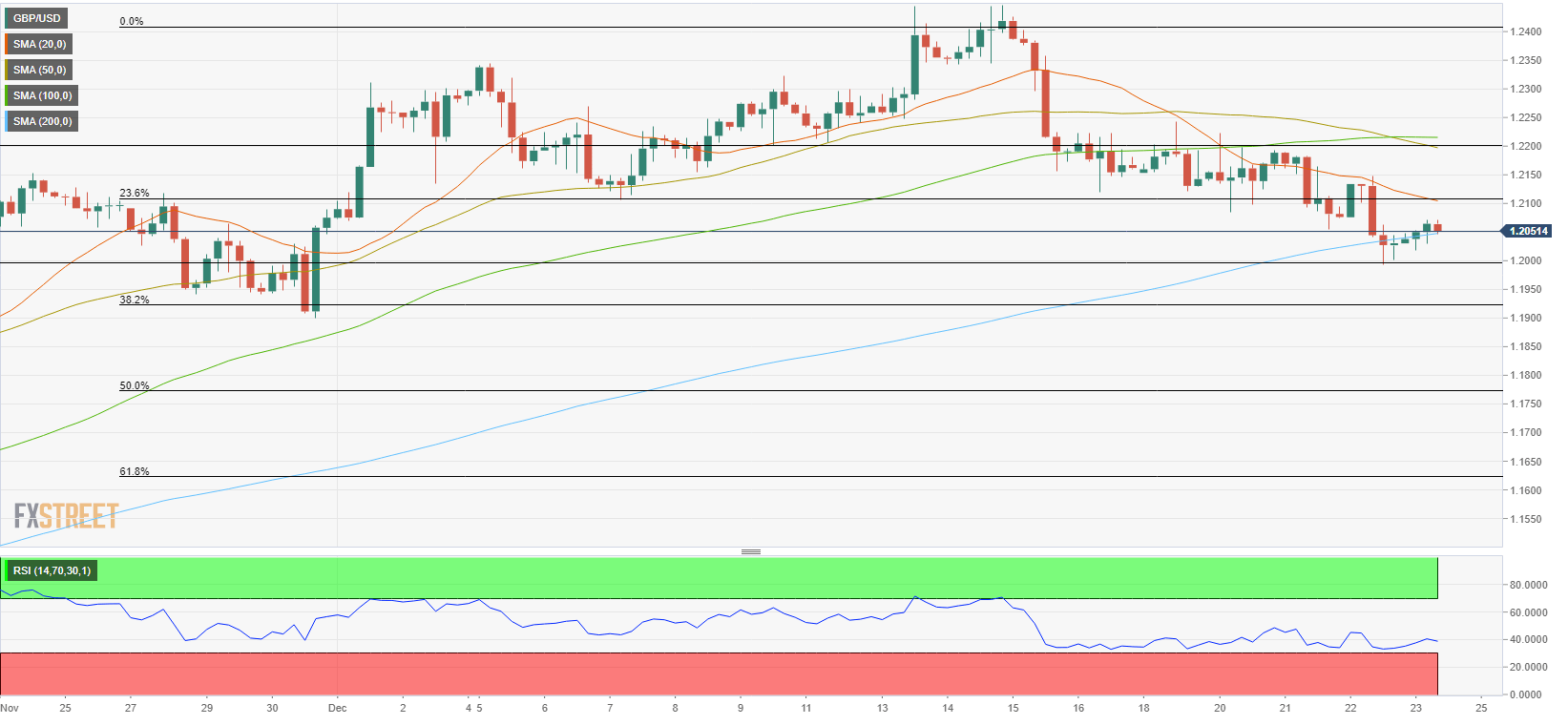 Inflasi PCE AS mereda seperti yang diantisipasi pada bulan November, Pesanan Barang Tahan Lama mengecewakan. GBP/USD kesulitan mempertahankan 1,2000 karena permintaan Dolar AS meningkat. Permintaan Dolar AS meningkat menjelang akhir pekan yang panjang. Menyusul penurunan singkat ke 1,2022, terendah baru harian, GBP/USD memangkas penurunan dan menggoda tertinggi harian. Saat ini diperdagangkan di zona harga 1,2040 karena minat spekulatif masih mencerna angka beragam ekonomi makro Amerika Serikat. Di satu sisi, Indeks Harga Belanja Konsumsi Pribadi/Personal Consumption Expenditures (PCE) naik 5,5% YoY di November dari 6,1% di Oktober, yang selanjutnya mengindikasikan berkurangnya tekanan inflasi di negara tersebut. Di sisi lain, Pesanan Barang Tahan Lama di bulan yang sama secara tak terduga turun 2,1% MoM, jauh lebih buruk dari antisipasi turun 0,6% oleh pelaku pasar. Namun, angka inti, Pesanan Barang Modal Non-Pertahanan di luar Pesawat, naik 0,2%, lebih baik dari prakiraan tidak berubah. Dolar AS awalnya terapresiasi setelah berita tersebut, kemudian berbelok ke bawah, sekarang rally lagi didukung tertinggi baru mingguan dalam imbal hasil obligasi Pemerintah AS. Imbal hasil pada note 10-tahun melonjak ke 3,728%, tertinggi untuk bulan Desember, sedangkan imbal hasil note -tahun naik ke 4,327%. Imbal hasil mempertahankan kenaikan menjelang pembukaan Wall Street, sementara indeks AS siap untuk dibuka dengan kenaikan moderat, mengikuti jejak rekan-rekan mereka di luar negeri. Sementara itu, Pound Inggris tetap lemah setelah rilis makroekonomi terbaru mengonfirmasi Inggris menderita resesi yang kemungkinan akan berlanjut hingga 2023. Perspektif Teknis GBP/USD GBP/USD sedikit berubah pada basis harian saat liburan musim dingin dimulai, membatasi volume. Pembacaan teknis di grafik harian mengisyaratkan penurunan lebih lanjut ke depan karena pasangan mata uang ini berkembang di bawah SMA 200 yang bearish setelah menembus di bawahnya pada hari Kamis. Indikator-indikator teknis, sementara itu, berkembang dalam level-level negatif, tidak memiliki kekuatan arah yang jelas tetapi tidak menunjukkan tanda-tanda kelelahan bearish dan jauh di atas pembacaan oversold. Terendah mingguan di 1,1991 adalah level support jangka pendek terdekat, kemudian 1,1950. Penutupan harian di dekat 1,1950 bisa mengantisipasi penurunan yang lebih curam minggu depan. Penjual menambahkan posisi jual di sekitar 1,2080, level resistance terdekat, diikuti oleh 1,2140. level-level teknis GBP/USD Tinjauan Harga terakhir hari ini 1.2038 Perubahan harian hari ini -0.0003 Perubahan harian hari ini % -0.02 Pembukaan harian hari ini 1.2041 Tren SMA 20 Harian 1.2172 SMA 50 Harian 1.1812 SMA 100 Harian 1.1672 SMA 200 Harian 1.2081 Level Tinggi Harian Sebelumnya 1.2147 Rendah Harian Sebelumnya 1.1992 Tinggi Mingguan Sebelumnya 1.2447 Rendah Mingguan Sebelumnya 1.212 Tinggi Bulanan Sebelumnya 1.2154 Rendah Bulanan Sebelumnya 1.1147 Fibonacci Harian 38,2% 1.2052 Fibonacci Harian 61,8% 1.2088 Pivot Point Harian S1 1.1973 Pivot Point Harian S2 1.1906 Pivot Point Harian S3 1.1819 Pivot Point Harian R1 1.2128 Pivot Point Harian R2 1.2215 Pivot Point Harian R3 1.2283