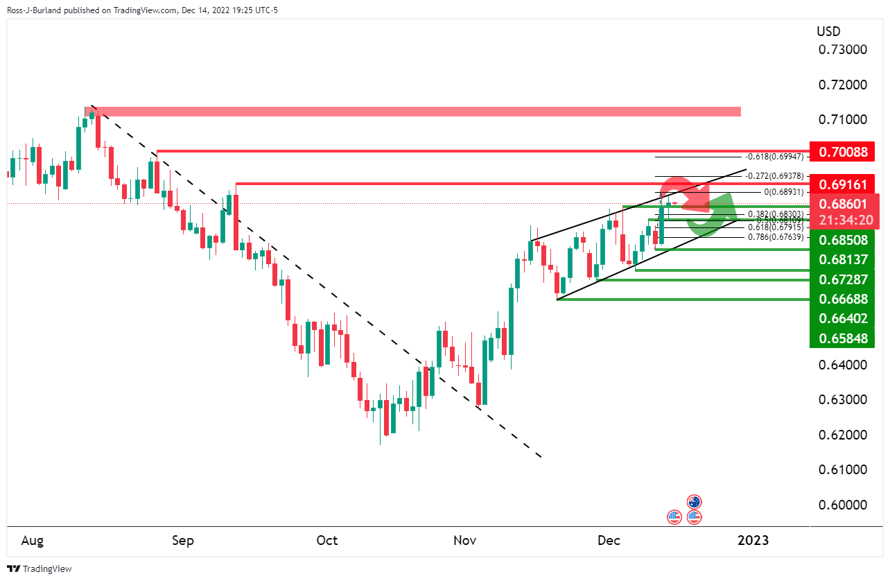 Penjualan Ritel YoY Tiongkok bulan November, merosot 5,9% versus 3,6% yang diprakirakan dan -0,5% sebelumnya sementara Produksi Industri negara itu berada di 2,2% YoY versus 3,6% yang diprakirakan dan 5,0% sebelumnya. Sementara itu, Investasi Aset Tetap turun ke 5,3% YoY di bulan November versus 5,6% prakiraan dan 5,8% sebelumnya. Reaksi Pasar Dolar Australia tetap tidak terpengaruh oleh rilis data Tiongkok yang suram. Pasangan AUD/USD melakukan pemulihan di dekat 0,6850, turun sebesar 0,25% pada hari ini, saat artikel ini ditulis.
