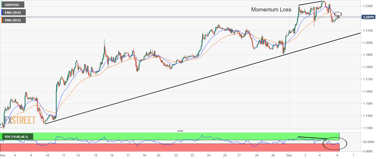 Pound Sterling telah meningkatkan permintaan karena meredanya sentimen risk-off dan data Penjualan Ritel Like-For-Like yang lebih kuat. Hilangnya momentum kenaikan mengakibatkan aksi jual di Cable. Bear cross, yang diwakili oleh EMA 20 dan 50 periode di 1,2230, menambah filter sisi bawah. Pasangan GBP/USD telah melanjutkan pemulihannya di atas resistensi psikologis 1,2200 di sesi Tokyo. Cable memilih pembalikan setelah turun mendekati 1,2167 karena dorongan risk-off telah sedikit terpangkas. Selain itu, Penjualan Ritel Like-For-Like yang optimis oleh British Retail Consortium (BRC) telah mendukung Pound Sterling. Sementara itu, Indeks Dolar AS (DXY) berupaya untuk bertahan di atas rintangan level bulat 105,00. Imbal hasil obligasi pemerintah AS 10-tahun telah merasakan tekanan jual setelah mencetak level tertinggi 3,59%. Dalam grafik per jam, Cable telah menyaksikan tekanan jual dari pelaku pasar setelah gagal menjaga momentum kenaikan tetap utuh. Aset ini membuat titik higher high sementara osilator momentum, Relative Strength Index (RSI) (14), membentuk titik lower high pada hari Senin. Hilangnya momentum kenaikan memaksa investor untuk memesan posisi beli. Bear cross, yang diwakili oleh Exponential Moving Averages (EMA) 20 dan 50 periode di 1,2230, menambah filter sisi bawah. Sementara itu, RSI (14) melayang di sekitar 40,00. Penurunan di dalam kisaran bearish 20,00-40,00 akan memicu momentum bearish. Selanjutnya, penurunan di bawah level terendah hari Jumat di 1,2134 akan menyeret Cable menuju resistensi psikologis di 1,2000, diikuti oleh EMA-20 di sekitar 1,1971. Di sisi lain, terobosan di atas level tertinggi hari Senin di 1,2345 akan mendorong Cable menuju level tertinggi 16 Juni di sekitar 1,2400. Jika ditembus akan mengirim mata uang utama menuju level terendah 1 Juni di 1,2460. Grafik per jam GBP/USD Level Teknis GBP/USD Tinjauan Harga terakhir hari ini 1.2202 Perubahan harian hari ini 23 Perubahan harian hari ini % 0.19 Pembukaan harian hari ini 1.2179 Tren SMA 20 Harian 1.1919 SMA 50 Harian 1.1533 SMA 100 Harian 1.1658 SMA 200 Harian 1.2143 Level Tinggi Harian Sebelumnya 1.2345 Rendah Harian Sebelumnya 1.2162 Tinggi Mingguan Sebelumnya 1.2311 Rendah Mingguan Sebelumnya 1.19 Tinggi Bulanan Sebelumnya 1.2154 Rendah Bulanan Sebelumnya 1.1147 Fibonacci Harian 38,2% 1.2232 Fibonacci Harian 61,8% 1.2275 Pivot Point Harian S1 1.2112 Pivot Point Harian S2 1.2045 Pivot Point Harian S3 1.1929 Pivot Point Harian R1 1.2295 Pivot Point Harian R2 1.2412 Pivot Point Harian R3 1.2478