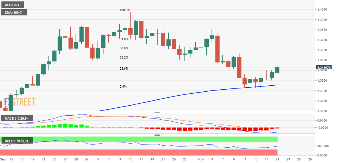 USD/CAD mendapatkan beberapa penawaran beli pada hari Rabu dan memulihkan sebagian dari penurunan semalam. Turunnya harga minyak melemahkan Loonie dan tetap mendukung pergerakan. Taruhan pada kenaikan suku bunga The Fed yang tidak terlalu agresif membebani USD dan mungkin membatasi kenaikan pasangan mata uang ini. Pedagang sekarang menanti data makro AS untuk mencari beberapa dorongan menjelang risalah utama FOMC. Pasangan USD/CAD menarik beberapa aksi beli di dekat area 1,3360-1,3355 dan mementaskan penguatan yang bagus dari terendah mingguan yang diraih sebelumnya Rabu ini. Pasangan mata uang ini mencapai tertinggi baru harian di dekat wilayah 1,3425 selama awal sesi Amerika Utara dan untuk saat ini, tampaknya telah menghentikan koreksi ke bawah minggu ini dari sekitar level psikologis 1,3500. Penurunan baru dalam harga minyak mentah terlihat melemahkan loonie yang terkait komoditas dan menjadi faktor utama yang bertindak sebagai pendorong untuk pasangan USD/CAD. Batas harga minyak Rusia yang akan segera diberlakukan oleh negara-negara Group of Seven (G7), bersama dengan kekhawatiran bahwa wabah COVID-19 baru di Tiongkok akan menghambat permintaan bahan bakar, membebani emas hitam. Selain itu, Organisation for Economic Cooperation and Development (OECD) melihat perlambatan ekspansi ekonomi global tahun depan dan semakin menambah tekanan pada harga minyak mentah. Dolar AS, di sisi lain, tetap tertekan untuk hari kedua berturut-turut di tengah meningkatnya penerimaan bahwa The Fed akan memperlambat laju pengetatan kebijakannya. Faktanya, pasar saat ini memperkirakan peluang yang lebih besar pada kenaikan suku bunga The Fed 50 bp yang relatif lebih kecil di bulan Desember. Selain itu, kinerja yang stabil di pasar ekuitas dipandang sebagai faktor lain yang membebani safe-haven greenback. Itu, pada gilirannya, dapat membatasi kenaikan lebih lanjut pasangan USD/CAD karena fokus pasar tetap terpaku pada risalah pertemuan FOMC. Investor akan mencari petunjuk tentang prospek kebijakan The Fed dan jalur kenaikan suku bunga di masa depan. Petunjuk tersebut akan memainkan peran penting dalam memengaruhi dinamika jangka pendek harga USD dan memberikan dorongan arah baru untuk pasangan USD/CAD. Menuju acara utama, kalender ekonomi AS – yang menampilkan rilis Pesanan Barang Tahan Lama, Klaim Pengangguran Awal Mingguan, IMP flash, dan data Penjualan Rumah Baru – mungkin menghasilkan peluang perdagangan jangka pendek. level-level teknis USD/CAD Tinjauan Harga terakhir hari ini 1.3428 Perubahan harian hari ini 0.0055 Perubahan harian hari ini % 0.41 Pembukaan harian hari ini 1.3373 Tren SMA 20 Harian 1.3471 SMA 50 Harian 1.356 SMA 100 Harian 1.326 SMA 200 Harian 1.3001 Level Tinggi Harian Sebelumnya 1.346 Rendah Harian Sebelumnya 1.3373 Tinggi Mingguan Sebelumnya 1.3409 Rendah Mingguan Sebelumnya 1.3226 Tinggi Bulanan Sebelumnya 1.3978 Rendah Bulanan Sebelumnya 1.3496 Fibonacci Harian 38,2% 1.3406 Fibonacci Harian 61,8% 1.3427 Pivot Point Harian S1 1.3344 Pivot Point Harian S2 1.3315 Pivot Point Harian S3 1.3257 Pivot Point Harian R1 1.3431 Pivot Point Harian R2 1.3489 Pivot Point Harian R3 1.3518
