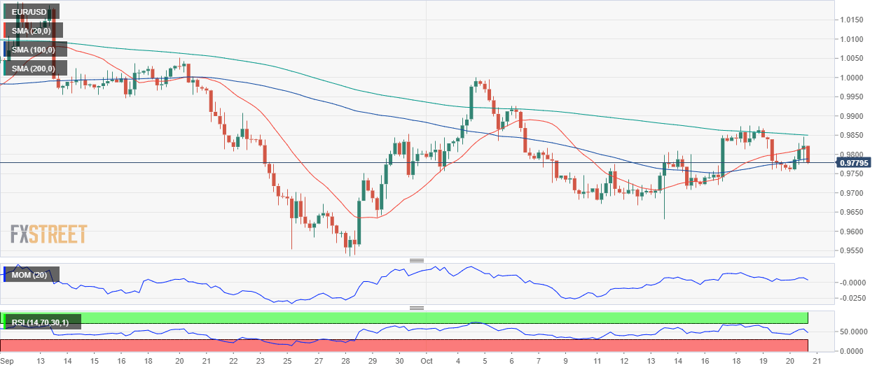 Euro tidak dapat menahan kenaikan Dolar. Ekonom di Scotiabank menyoroti level teknis utama yang harus diperhatikan. Pola teknis perdagangan telah konsisten dalam beberapa bulan terakhir "Sejak pertengahan tahun, rebound EUR telah terbatas pada Moving Average 40-hari – atau level yang mendekati itu – menjelang penurunan baru dan posisi terendah siklus baru. Sepanjang pekan ini, pola itu bertahan, dengan EUR dibatasi di 0,98 atas (DMA-40 di 0,9878 hari ini) dan kemudian berubah menjadi lunak. Namun, posisi terendah siklus baru masih jauh (di bawah 0,95). "Dalam jangka pendek, kami melihat support di 0,9720 dan 0,9675/80 di bawahnya." "Resistensi intraday adalah 0,9800/10."