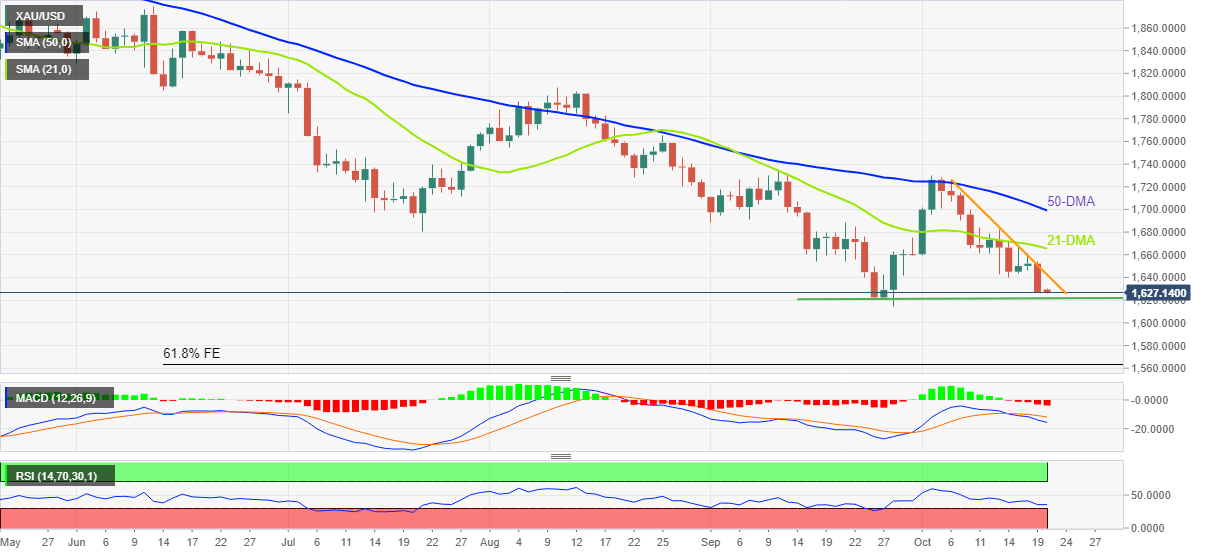 Harga emas bertahan lebih rendah di dekat level terendah bulanan setelah mengalami penurunan terbanyak dalam 12 hari. Inflasi yang lebih tinggi memperbaharui masalah resesi, berita utama terkait Tiongkok semakin memperkuat sentimen risk-off. DXY pulih karena imbal hasil obligasi 10-tahun pemerintah AS menyentuh kembali level tertinggi 14 tahun. Sentimen risk-off, dolar AS yang lebih kuat dapat menjaga harapan para penjual XAU/USD untuk menyaksikan level terendah baru 2022. Harga emas (XAU/USD) menyentuh kembali level terendah bulanan di dekat $1.626 selama sesi pertengahan Asia hari Kamis. Meskipun demikian, logam kuning tersebut menghentikan pemulihan dua hari pada hari sebelumnya sementara mengalami penurunan terbanyak dalam dua minggu karena sentimen masam bergabung dengan imbal hasil obligasi pemerintah AS yang lebih kuat akan mendukung pemulihan dolar AS. Indeks Dolar AS (DXY) mendapatkan kembali level acuan 113,00 setelah memantul dari level terendah dua pekan pada hari sebelumnya. Selain sentimen risiko, pertaruhan The Fed yang hawkish juga mendukung ukuran greenback versus enam mata uang utama, yang pada gilirannya membebani harga emas batangan ini. Sesuai dengan FedWatch Tool CME, pasar memprakirakan sekitar 95% peluang kenaikan suku bunga sebesar 75 bp oleh The Fed pada bulan November. Taruhan The Fed yang hawkish tampaknya membenarkan komentar optimis dari para pembuat kebijakan Federal Reserve (The Fed) dan meningkatkan kekhawatiran terhadap perlambatan ekonomi. Baru-baru ini, Presiden The Fed Chicago Charles Evans mengatakan bahwa (mereka) perlu memastikan tekanan inflasi tidak meluas lebih jauh, yang pada gilirannya menunjukkan lebih banyak kenaikan suku bunga meskipun ada masalah resesi. Perlu dicatat bahwa Beige Book The Fed semakin memperkuat kekhawatiran pasar dengan menunjukkan peningkatan pesimisme di antara para responden. Hal tersebut juga bergabung dengan angka inflasi yang secara luas lebih kuat dari Inggris, Zona Euro dan Kanada akan meningkatkan masalah ekonomi dan membebani harga XAU/USD. Pada baris yang sama adalah beberapa tajuk utama mengenai Tiongkok. Negara naga ini mencatatkan angka Covid yang tinggi dalam empat bulan, sementara menurut Nikkei, kesiapan AS untuk bekerja sama dengan Taiwan untuk bersama-sama memproduksi senjata Amerika, semakin memperburuk pertikaian Tiongkok-Amerika. Mengingat status Tiongkok sebagai salah satu konsumen emas dunia, hal negatif dari Beijing ini menenggelamkan harga logam tersebut. Imbal hasil obligasi 10-tahun pemerintah AS menyentuh kembali level tertinggi 14 tahun di atas 4,0% karena para pelaku pasar bergegas menuju keamanan risiko. Hal itu juga membebani Wall Street dan Kontrak Berjangka S&P 500 sesudahnya. Selanjutnya, harga emas kemungkinan akan menyaksikan penurunan lebih lanjut di tengah kalender ekonomi yang sepi di AS dan antisipasi tidak adanya tindakan dari People's Bank of China (PBOC) selama pertemuan kebijakan moneternya. Analisis Teknis Garis resistance berusia dua minggu bergabung dengan sinyal MACD yang bearish dan RSI yang suram untuk mengarahkan harga emas menuju zona support horizontal yang terdiri dari posisi terendah yang dicatat selama akhir September, sekitar $1.620. Namun, perlu dicatat bahwa hal yang sama dapat menguji para penjual XAU/USD di tengah RSI (14) yang hampir oversold, penembusan level ini akan mengarahkan penurunan menuju level terendah tahunan $1.614, menyoroti level acuan $1.600. Sebaliknya, garis resistance yang disebutkan di atas, di sekitar $1.643, menjaga pergerakan pemulihan langsung harga di depan rintangan 21-DMA di sekitar $1.665. Meski begitu, para pembeli emas tetap berhati-hati kecuali jika emas batangan memberikan penutupan harian di luar DMA-50, di sekitar $1.700 pada saat berita ini ditulis. Secara keseluruhan, bears kemungkinan akan tetap memegang kendali tetapi ruang ke sisi bawah tampak terbatas. Emas: Grafik Harian Tren: Diperkirakan akan terjadi penurunan terbatas Level-Level Teknis XAU/USD Tinjauan Harga terakhir hari ini 1628.88 Perubahan harian hari ini -0.53 Perubahan harian hari ini % -0.03 Pembukaan harian hari ini 1629.41 Tren SMA 20 Harian 1667.5 SMA 50 Harian 1702.32 SMA 100 Harian 1744.01 SMA 200 Harian 1816.05 Level Tinggi Harian Sebelumnya 1654.5 Rendah Harian Sebelumnya 1627.81 Tinggi Mingguan Sebelumnya 1699.96 Rendah Mingguan Sebelumnya 1640.23 Tinggi Bulanan Sebelumnya 1735.17 Rendah Bulanan Sebelumnya 1614.85 Fibonacci Harian 38,2% 1638.01 Fibonacci Harian 61,8% 1644.3 Pivot Point Harian S1 1619.98 Pivot Point Harian S2 1610.55 Pivot Point Harian S3 1593.29 Pivot Point Harian R1 1646.67 Pivot Point Harian R2 1663.93 Pivot Point Harian R3 1673.36