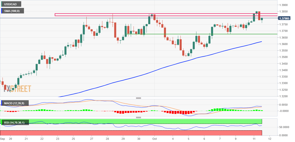 USD/CAD mundur dari level tertinggi sejak Mei 2020 di tengah pullback moderat USD. Penurunan harga minyak melemahkan loonie dan membantu membatasi penurunan, untuk saat ini. Pembeli sekarang menunggu penguatan berkelanjutan di atas area 1,3830-40 sebelum menempatkan taruhan baru. Pasangan USD/CAD menarik beberapa aksi beli-saat-turun di dekat wilayah 1,3760 dan menghentikan pullback intraday dari level tertinggi sejak Mei 2020 yang diraih sebelumnya Selasa ini. Harga spot naik kembali ke 1,3800 selama awal sesi Amerika Utara dan tampak ingin membangun rally yang terjadi selama sekitar seminggu terakhir. Kekhawatiran terhadap penurunan ekonomi global dan meningkatnya kasus COVID-19 di Tiongkok akan mengganggu permintaan bahan bakar global menyeret harga minyak mentah lebih rendah untuk hari kedua berturut-turut. Itu, pada gilirannya, melemahkan loonie yang terkait komoditas dan bertindak sebagai pendorong untuk pasangan USD/CAD. Namun demikian, penurunan intraday dalam dolar AS dapat membatasi sisi atas. Dari sudut pandang teknis, pasangan USD/CAD, sejauh ini, kesulitan menemukan penerimaan atau membangun momentum di atas zona penawaran jual 1,3830-1,3840. Sehingga bijaksana menunggu tindak lanjut aksi beli yang kuat di atas swing high harian, di sekitar wilayah 1,3855, sebelum memposisikan diri untuk apresiasi lebih lanjut. Pasangan USD/CAD kemudian dapat mempercepat momentum dan bertujuan untuk merebut kembali angka bulat 1,3900. Rintangan relevan berikutnya dipatok di dekat wilayah 1,3925-1,3930, di atasnya harga spot bisa naik lebih jauh menuju level psikologis 1,4000. Di sisi lain, area 1,3760, atau terendah harian, sekarang tampaknya bertindak sebagai support langsung. Penurunan lebih lanjut dapat dilihat sebagai peluang beli dan tetap terbatas di dekat level 1,3700. Level tersebut seharusnya bertindak sebagai titik penting bagi pedagang jangka pendek, yang jika ditembus dengan tegas mungkin akan mendorong beberapa aksi jual teknis. Pasangan USD/CAD kemudian mungkin menjadi rentan untuk melanjutkan pullback korektif menuju level 1,3600 sebelum akhirnya meluncur kembali ke swing low bulanan, di sekitar level psikologis 1,3500. Grafik 4-jam USD/CAD level-level teknis USD/CAD Tinjauan Harga terakhir hari ini 1.3815 Perubahan harian hari ini 0.0035 Perubahan harian hari ini % 0.25 Pembukaan harian hari ini 1.378 Tren SMA 20 Harian 1.3529 SMA 50 Harian 1.3195 SMA 100 Harian 1.3026 SMA 200 Harian 1.286 Level Tinggi Harian Sebelumnya 1.3782 Rendah Harian Sebelumnya 1.3703 Tinggi Mingguan Sebelumnya 1.3827 Rendah Mingguan Sebelumnya 1.3503 Tinggi Bulanan Sebelumnya 1.3838 Rendah Bulanan Sebelumnya 1.2954 Fibonacci Harian 38,2% 1.3752 Fibonacci Harian 61,8% 1.3733 Pivot Point Harian S1 1.3728 Pivot Point Harian S2 1.3676 Pivot Point Harian S3 1.3649 Pivot Point Harian R1 1.3807 Pivot Point Harian R2 1.3834 Pivot Point Harian R3 1.3886