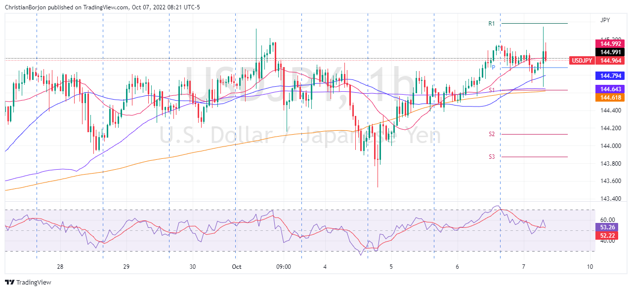 USD/JPY mencetak tren naik empat hari karena pembeli menyerang level tertinggi multi-tahun yang dicatat pada bulan September. Imbal hasil obligasi 10-tahun pemerintah AS naik untuk minggu kedelapan berturut-turut karena laporan lapangan pekerjaan AS yang lebih kuat, taruhan The Fed yang hawkish. Intervensi BOJ dan tantangan bagi bank sentral hawkish gagal menjinakkan para pembeli. IHK AS, Risalah Rapat FOMC akan sangat penting untuk menentukan kenaikan lebih lanjut dari pasangan yen ini. USD/JPY tetap berada di kaki depan sekitar 145,50, menyodok level tertinggi 24 tahun yang dicatat pada akhir September selama sesi Asia hari Senin. Kenaikan terbaru pasangan yen ini dapat dikaitkan dengan kenaikan luas dolar AS bahkan ketika liburan di Jepang dan AS menantang para pedagang momentum. Meskipun demikian, Indeks Dolar AS (DXY) naik selama tiga hari terakhir sambil membalikkan pullback mingguan sebelumnya dari level tertinggi 20 tahun karena pasar memperhitungkan kenaikan suku bunga dari The Fed sebesar 75 basis poin (bp). Di balik taruhan The Fed yang hawkish bisa jadi laporan lapangan pekerjaan AS yang lebih kuat dan komentar-komentar optimis dari para pengambil kebijakan yang menyarankan kenaikan suku bunga lebih lanjut sebelum jeda. DXY menyambut baik laporan pekerjaan hari Jumat untuk bulan September karena berita utama Nonfarm Payrolls (NFP) naik menjadi 265 ribu versus 250 ribu yang diharapkan. Yang juga semakin memperkiat pengukur greenback ini adalah penurunan tak terduga dalam Tingkat Pengangguran menjadi 3,5% dibandingkan dengan proyeksi yang menunjukkan tidak ada perubahan pada 3,7% sebelumnya. Selain taruhan The Fed yang hawkish, kekhawatiran terhadap resesi dan meningkatnya pertikaian geopolitik antara Rusia dan Ukraina juga mendorong pasar imbal hasil obligasi pemerintah AS, serta harga USD/JPY. Perlu dicatat bahwa imbal hasil obligasi 10-tahun pemerintah AS naik selama delapan minggu berturut-turut dalam delapan minggu terakhir sebelum berhenti di sekitar 3,90% baru-baru ini. Imbal hasil yang lebih tinggi membebani Wall Street dan baru-baru ini pada Kontrak Berjangka S&P 500. Perlu dicatat bahwa pembelian obligasi yang sering dilakukan Bank of Japan (BOJ) gagal menantang para penjual USD/JPY karena bank sentral Jepang terus mempertahankan kebijakan uang mudah, bertentangan dengan pidato The Fed yang hawkish. Selanjutnya, hari libur hari ini di AS dan Jepang dapat menawarkan momentum terbatas bagi para pembeli USD/JPY tetapi pergerakan naik kemungkinan akan menang di tengah kesibukan pasar terhadap keamanan risiko. Meskipun demikian, Risalah Rapat Komite Pasar Terbuka Federal (FOMC) hari Rabu dan Indeks Harga Konsumen (IHK) AS pada hari Kamis akan sangat penting untuk arah jangka pendek. Analisis Teknis Garis tren naik berusia dua minggu bergabung dengan puncak multi-tahun baru-baru ini untuk menyoroti 145,90-95 sebagai rintangan utama bagi para pembeli USD/JPY untuk diperhatikan. Level-Level Teknis USD/JPY Tinjauan Harga terakhir hari ini 145.49 Perubahan harian hari ini 0.25 Perubahan harian hari ini % 0.17 Pembukaan harian hari ini 145.24 Tren SMA 20 Harian 144.01 SMA 50 Harian 139.76 SMA 100 Harian 137.01 SMA 200 Harian 128.71 Level Tinggi Harian Sebelumnya 145.44 Rendah Harian Sebelumnya 144.6 Tinggi Mingguan Sebelumnya 145.44 Rendah Mingguan Sebelumnya 143.53 Tinggi Bulanan Sebelumnya 145.9 Rendah Bulanan Sebelumnya 138.78 Fibonacci Harian 38,2% 145.12 Fibonacci Harian 61,8% 144.92 Pivot Point Harian S1 144.75 Pivot Point Harian S2 144.25 Pivot Point Harian S3 143.91 Pivot Point Harian R1 145.59 Pivot Point Harian R2 145.93 Pivot Point Harian R3 146.43