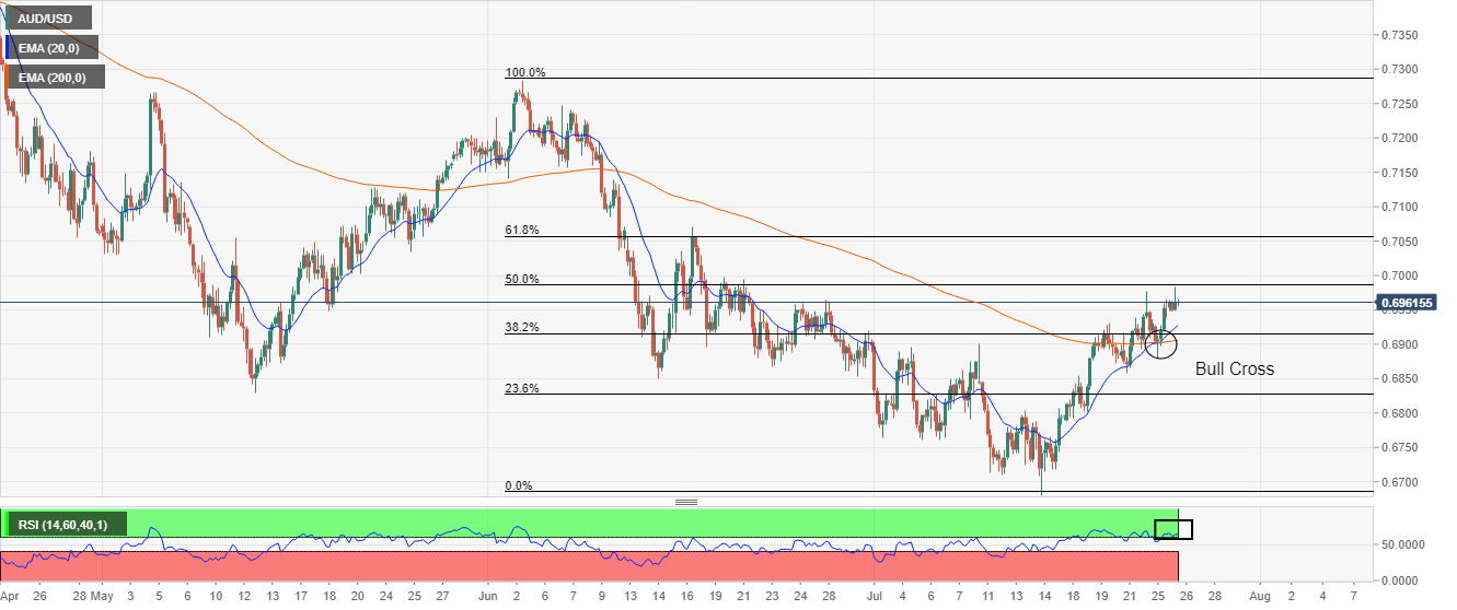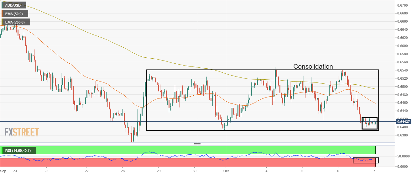 Osilasi di sekitar 0,6400 mengindikasikan penumpukan aksi juak untuk penembusan ke sisi bawah. Penurunan EMA 50 dan 200 menambah penghalang ke sisi bawah. RSI (14) telah bergeser ke dalam kisaran bearish 20,00-40,00. Pasangan AUD/USD menunjukkan pergerakan bolak-balik dalam kisaran sempit 0,6400-0,6422 di sesi Tokyo. Aset ini telah berbalik sideways setelah penurunan tegak lurus dari 0,6540 karena sentimen pasar berubah sangat masam pada ketegangan geopolitik dan revisi turun prospek pertumbuhan dari Dana Moneter Internasional (IMF). Pada skala per jam, aset ini telah diperdagangkan dalam proses penyesuaian inventaris yang tercatat dalam kisaran 0,6390-0,6548. Karena mata uang utama masih berosilasi di dalam wilayah yang ditentukan, sulit untuk mencatatnya sebagai penembusan atau penembusan ke sisi bawah. Perlu dicatat bahwa aset ini berosilasi di dekat bagian bawah sekitar 0,6400. Perdagangan sideways diikuti oleh penurunan tegak lurus, oleh karena itu, kemungkinan para pembelo greenback mengumpulkan momentum untuk penembusan ke sisi bawah. Sementara itu, Exponential Moving Averages (EMA) periode 50 dan 200 masing-masing di 0,6494 dan 0,6457 telah mengarah ke selatan, yang mengindikasikan pelemahan ke depan. Selain itu, Relative Strength Index (RSI) (14) telah bergeser ke dalam kisaran bearish 20,00-40,00, yang menambah penghalang ke sisi bawah. Ke depan, penurunan di bawah level terendah dua tahun di 0,6363 akan menyeret aset ini menuju level terendah 16 April 2020 di 0,6264, diikuti oleh support level angka bulat di 0,6100. Di sisi lain, penembusan di atas level tertinggi hari Selasa di 0,6547 akan mendorong aset ini menuju level tertinggi 22 September di 0,6670 dan level tertinggi 18 September di 0,6734. Grafik Per Jam AUD/USD Level-Level Teknis AUD/USD Tinjauan Harga terakhir hari ini 0.6426 Perubahan harian hari ini 0.0021 Perubahan harian hari ini % 0.33 Pembukaan harian hari ini 0.6405 Tren SMA 20 Harian 0.6604 SMA 50 Harian 0.6794 SMA 100 Harian 0.6883 SMA 200 Harian 0.7061 Level Tinggi Harian Sebelumnya 0.6541 Rendah Harian Sebelumnya 0.639 Tinggi Mingguan Sebelumnya 0.6538 Rendah Mingguan Sebelumnya 0.6363 Tinggi Bulanan Sebelumnya 0.6916 Rendah Bulanan Sebelumnya 0.6363 Fibonacci Harian 38,2% 0.6447 Fibonacci Harian 61,8% 0.6483 Pivot Point Harian S1 0.635 Pivot Point Harian S2 0.6294 Pivot Point Harian S3 0.6198 Pivot Point Harian R1 0.6501 Pivot Point Harian R2 0.6597 Pivot Point Harian R3 0.6652