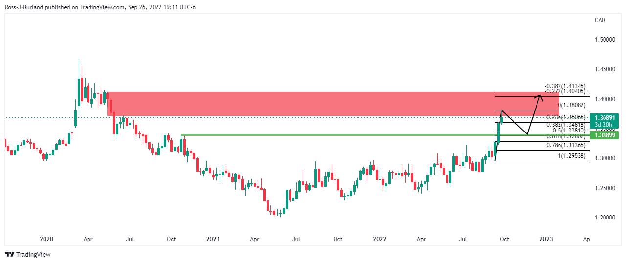 Para penjual USD/CAD bisa jadi akan bergerak dari resistance mingguan. Pola harmonik grafik harian adalah bearish. USD/CAD mencapai area resistance penting dan koreksi dapat segera terjadi pada grafik jangka panjang karena analisis berikut akan mengilustrasikan di seluruh grafik mingguan dan harian. Grafik Mingguan USD/CAD Harga telah mencapai area resistance pada grafik mingguan dan sementara ada kemungkinan bahwa rally akan berlanjut, berikut ini akan menarik perhatian para penjual: Grafik Harian USD/CAD Pola harmoniknya bearish dan harga yang menemui resistance akan diantisipasi untuk berbalik lebih rendah dalam koreksi yang dapat melihat mean reversion50% bermain yang memiliki pertemuan dengan resistance sebelumnya pada November 2020.