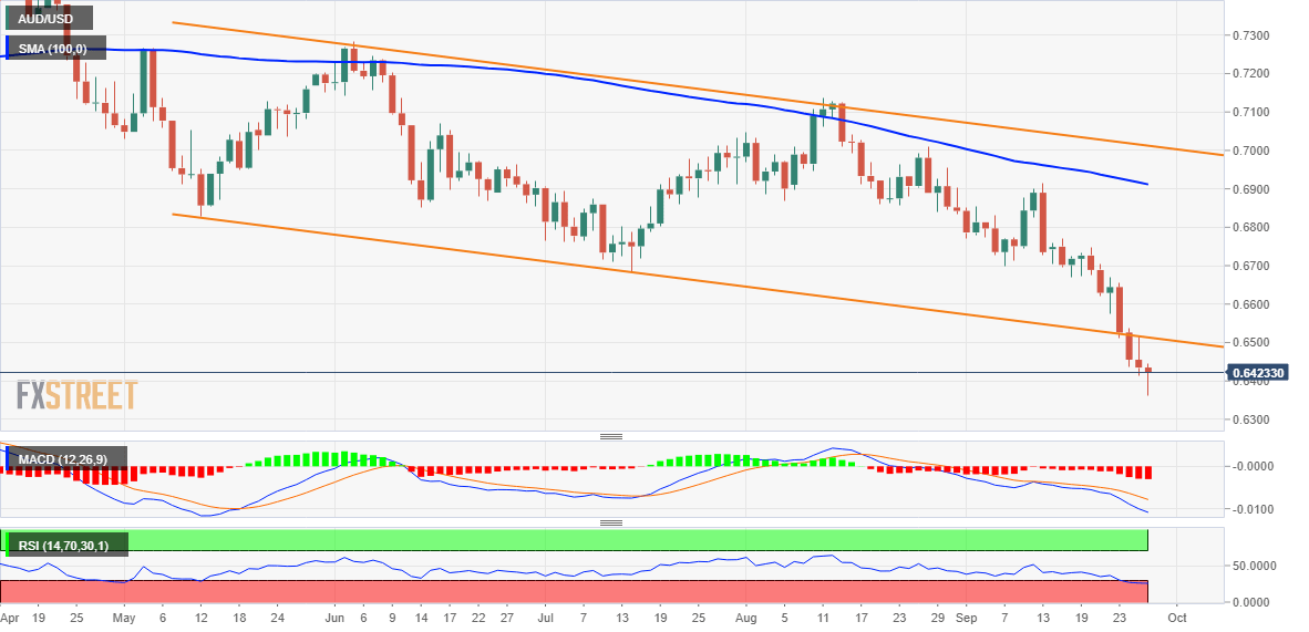 Kombinasi faktor-faktor membantu AUD/USD untuk rebound dari terendah lebih dari dua tahun. Kemunduran imbal hasil obligasi AS mendorong beberapa aksi profit-taking USD dan menawarkan dukungan. Perubahan positif dalam sentimen risiko juga menguntungkan dolar Australia yang sensitif terhadap risiko. Pasangan AUD/USD mementaskan pemulihan yang baik dari level terendah sejak April 2020 yang diraih sebelumnya Rabu ini, meskipun tidak ada keyakinan bullish. AUD/USD saat ini di sekitar area 0,6425-0,6430 dan tetap bergantung pada dinamika harga dolar AS. Efek dari intervensi Bank of England untuk menopang pasar gilt memicu penurunan tajam dalam imbal hasil obligasi Pemerintah AS. Itu, bersama dengan perubahan haluan positif dalam sentimen risiko global, memaksa safe-haven USD untuk memangkas sebagian dari kenaikan intraday ke puncak baru 20 tahun dan menguntungkan dolar Australia yang sensitif terhadap risiko. Namun demikian, meningkatnya kekhawatiran terhadap penurunan ekonomi yang lebih dalam dan risiko eskalasi lebih lanjut dalam konflik Rusia-Ukraina seharusnya membatasi optimisme di pasar. Terlepas dari itu, taruhan bahwa The Fed akan tetap berpegang pada jalur pengetatan kebijakan moneter yang agresif terus bertindak sebagai pendorong untuk dolar AS dan membatasi pasangan AUD/USD. Dari sudut pandang teknis, penurunan pada hari pertama minggu ini mengkonfirmasi penembusan bearish di bawah support saluran miring ke bawah yang membentang dari Mei. Titik tembus support tersebut, di sekitar level psikologis 0,6500, sekarang akan bertindak sebagai titik penting. Kenaikan apa pun selanjutnya mungkin menghadapi rintangan di dekat tertinggi mingguan, di sekitar area 0,6535-0,6540. Penguatan berkelanjutan di atasnya dapat memicu pergerakan short-covering dan memungkinkan pasangan AUD/USD untuk kembali merebut angka bulat 0,6600. Beberapa tindak lanjut aksi beli akan mengindikasikan bahwa harga spot telah membentuk dasar dan membuka jalan untuk kelanjutan pemulihan menuju penghalang relevan berikutnya di dekat zona penawaran jual 0,6655-0,6670. Di sisi lain, pelemahan kembali di bawah 0,6400 akan meniadakan prospek kenaikan yang signifikan dan membuat pasangan AUD/USD rentan untuk menguji kembali terendah tahun, di sekitar wilayah 0,6365. Lintasan ke bawah bisa lebih jauh diperpanjang menuju angka bulat 0,6300, meskipun RSI (14) oversold pada grafik harian membenarkan kehati-hatian bagi pedagang bearish. Grafik harian AUD/USD level-level teknis AUD/USD Tinjauan Harga terakhir hari ini 0.6425 Perubahan harian hari ini -0.0010 Perubahan harian hari ini % -0.16 Pembukaan harian hari ini 0.6435 Tren SMA 20 Harian 0.6712 SMA 50 Harian 0.686 SMA 100 Harian 0.6917 SMA 200 Harian 0.7087 Level Tinggi Harian Sebelumnya 0.6513 Rendah Harian Sebelumnya 0.6414 Tinggi Mingguan Sebelumnya 0.6748 Rendah Mingguan Sebelumnya 0.6512 Tinggi Bulanan Sebelumnya 0.7137 Rendah Bulanan Sebelumnya 0.6835 Fibonacci Harian 38,2% 0.6452 Fibonacci Harian 61,8% 0.6475 Pivot Point Harian S1 0.6395 Pivot Point Harian S2 0.6355 Pivot Point Harian S3 0.6295 Pivot Point Harian R1 0.6494 Pivot Point Harian R2 0.6553 Pivot Point Harian R3 0.6593