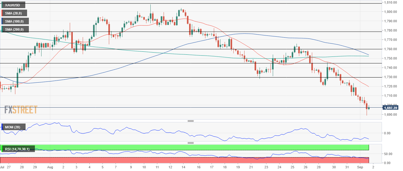 Emas turun ke terendah lebih dari dua tahun pada hari Jumat karena rally USD tetap tidak terganggu. Taruhan pada kenaikan suku bunga The Fed yang lebih agresif, kenaikan imbal hasil Obligasi AS mendukung dolar AS. Risiko geopolitik, sentimen risk-off dapat memberikan beberapa dukungan untuk safe-haven logam. Penembusan perdagangan mendukung prospek kelanjutan depresiasi. Emas turun ke level terendah sejak April 2020, di sekitar area $1.641 pada hari Jumat dan mengkonfirmasi penembusan baru di bawah kisaran perdagangan satu minggu. XAU/USD mempertahankan nada penawaran jualnya sepanjang awal sesi Amerika Utara dan tampaknya rentan meluncur lebih jauh. Aksi beli dolar AS yang tanpa henti tetap berlanjut pada hari perdagangan terakhir minggu ini di tengah ekspektasi pengetatan kebijakan yang lebih agresif oleh The Fed. Faktanya, Indeks USD, yang mengukur kinerja greenback terhadap sekeranjang mata uang, mencapai puncak baru 20 tahun dan terlihat mendorong arus menjauh dari emas dalam denominasi dolar. Bank sentral AS sebelumnya pekan ini mengisyaratkan akan menaikkan suku bunga dengan laju yang lebih cepat untuk memerangi inflasi yang sangat tinggi. Sejumlah bank sentral utama lainnya juga menaikkan suku bunga minggu ini, yang terus mengangkat imbal hasil obligasi pemerintah. Itu memberikan tekanan ke bawah tambahan pada emas yang tidak memberikan imbal hasil. Namun demikian, risiko eskalasi lebih lanjut dalam konflik Rusia-Ukraina menawarkan beberapa dukungan untuk safe-haven logam mulia. Presiden Rusia Vladimir Putin mengumumkan mobilisasi militer parsial segera, yang, bersama dengan kekhawatiran resesi, terus membebani sentimen investor dan dapat membatasi penurunan emas. Dari sudut pandang teknis, penembusan berkelanjutan di bawah terendah tahun sebelumnya, di sekitar wilayah $1.654-$1.653 dapat dilihat sebagai pemicu baru bagi pedagang bearish. Keadaan di atas mungkin sudah menyiapkan panggung untuk penurunan tambahan. Oleh karena itu, penurunan berikutnya menuju support relevan berikutnya, di sekitar $1.600, tetap mungkin terjadi. level-level teknis XAU/USD Tinjauan Harga terakhir hari ini 1645.03 Perubahan harian hari ini -26.23 Perubahan harian hari ini % -1.57 Pembukaan harian hari ini 1671.26 Tren SMA 20 Harian 1701.37 SMA 50 Harian 1732.87 SMA 100 Harian 1777.47 SMA 200 Harian 1829.16 Level Tinggi Harian Sebelumnya 1684.95 Rendah Harian Sebelumnya 1655.69 Tinggi Mingguan Sebelumnya 1735.17 Rendah Mingguan Sebelumnya 1654.17 Tinggi Bulanan Sebelumnya 1807.93 Rendah Bulanan Sebelumnya 1709.68 Fibonacci Harian 38,2% 1666.87 Fibonacci Harian 61,8% 1673.77 Pivot Point Harian S1 1656.32 Pivot Point Harian S2 1641.37 Pivot Point Harian S3 1627.06 Pivot Point Harian R1 1685.58 Pivot Point Harian R2 1699.89 Pivot Point Harian R3 1714.84
