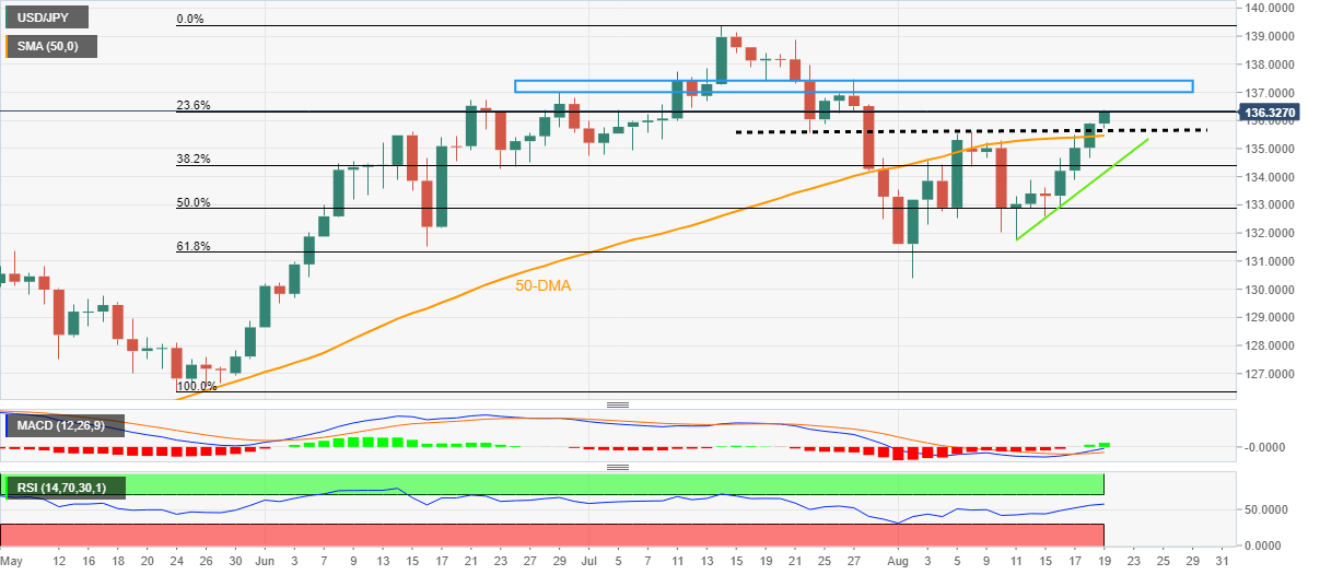 USD/JPY jungkir balik antara kenaikan hangat/penurunan minor sepanjang awal sesi Amerika Utara. Divergensi kebijakan The Fed-BoJ terus melemahkan JPY dan menawarkan dukungan untuk pasangan mata uang ini. Kemunduran imbal hasil obligasi AS tampaknya bertindak sebagai penghambat bagi USD dan membatasi kenaikan yang signifikan. Pasangan USD/JPY kesulitan memanfaatkan kenaikan yang tercatat selama dua sesi terakhir dan bertemu dengan beberapa penawaran jual di depan area 135,50. Harga spot turun ke terendah baru harian selama awal sesi Amerika Utara, meskipun dengan cepat bangkit kembali ke level psikologis 135,00. Divergensi besar dalam sikap kebijakan moneter yang diadopsi oleh Bank of Japan dan Federal Reserve terus melemahkan yen Jepang, yang, pada gilirannya, bertindak sebagai pendorong untuk pasangan USD/JPY. Faktanya, BoJ telah berulang kali mengatakan bahwa mereka akan mempertahankan pengaturan kebijakan yang sangat longgar. Sebaliknya, The Fed diperkirakan akan tetap pada jalur pengetatan kebijakannya meskipun ada tanda-tanda penurunan inflasi AS. Taruhan ditegaskan kembali oleh risalah pertemuan kebijakan FOMC 26-27 Juli, yang mengindikasikan bahwa para pembuat kebijakan tidak akan mempertimbangkan untuk menarik kembali kenaikan suku bunga sampai inflasi turun secara substansial. Terlepas dari itu, rilis makroekonomi AS yang lebih baik dari perkiraan membantu dolar AS untuk berdiri tegak di dekat tertinggi bulanan. Itu dilihat sebagai faktor lain yang memberikan beberapa dukungan untuk pasangan USD/JPY. Data yang dirilis Kamis ini menunjukkan bahwa Indeks Manufaktur Fed Philly naik ke 6,2 di Agustus, mengalahkan estimasi membaik ke -5 dari -12,3 yang dilaporkan pada bulan sebelumnya. Secara terpisah, Klaim Pengangguran Awal AS secara tak terduga turun ke 250 ribu selama pekan yang berakhir 12 Agustus dari revisi ke bawah minggu sebelumnya 252 ribu (sebelumnya 262 ribu). Namun demikian, kemunduran imbal hasil obligasi Pemerintah AS tampaknya menahan pembeli USD dari menempatkan taruhan agresif dan membatasi sisi atas pasangan USD/JPY, setidaknya untuk saat ini. Namun demikian, latar belakang fundamental mendukung prospek apresiasi jangka pendek lebih lanjut dalam pasangan USD/JPY, mengindikasikan bahwa penurunan signifikan apa pun dapat dilihat sebagai peluang beli dan tetap terbatas. level-level teknis USD/JPY Tinjauan Harga terakhir hari ini 134.99 Perubahan harian hari ini -0.04 Perubahan harian hari ini % -0.03 Pembukaan harian hari ini 135.03 Tren SMA 20 Harian 134.49 SMA 50 Harian 135.4 SMA 100 Harian 131.69 SMA 200 Harian 123.57 Level Tinggi Harian Sebelumnya 135.5 Rendah Harian Sebelumnya 133.91 Tinggi Mingguan Sebelumnya 135.58 Rendah Mingguan Sebelumnya 131.73 Tinggi Bulanan Sebelumnya 139.39 Rendah Bulanan Sebelumnya 132.5 Fibonacci Harian 38,2% 134.89 Fibonacci Harian 61,8% 134.52 Pivot Point Harian S1 134.12 Pivot Point Harian S2 133.22 Pivot Point Harian S3 132.53 Pivot Point Harian R1 135.72 Pivot Point Harian R2 136.4 Pivot Point Harian R3 137.31