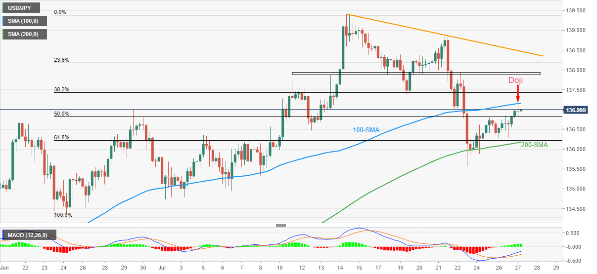 EUR/USD tetap datar setelah mencetak Doji bullish di dekat level terendah mingguan. Petunjuk awal dari Buletin Ekonomi bulanan ECB optimis. Dolar AS bergulat di tengah data beragam dan pidato The Fed menjelang NFP. Pesanan Pabrik Jerman, data lapis kedua AS dan berita utama Taiwan juga penting untuk dorongan baru. EUR/USD berubah menjadi menarik karena pasangan mata uang ini mengambil tawaran beli ke 1,0165, menegaskan Doji bullish hari Rabu, selama sesi pertengahan Asia hari Kamis. Meskipun demikian, para pembeli pasangan mata uang ini mencari validasi dari imbal hasil yang baru-baru ini lebih lemah dan harapan pernyataan optimis dari Buletin Ekonomi ECB bulanan. Meskipun demikian, pasangan mata uang utama ini menyentuh kembali level terendah mingguannya pada hari sebelumnya sebelum memantul dari 1,0122 yang menyentuh level pembukaan hari itu dan mencetak candlestick Doji bullish. Dalam melakukannya, harga melacak pergerakan dolar AS dan kekhawatiran yang beragam seputar krisis gas di blok tersebut, serta data yang tidak mengesankan, menjelang Nonfarm Payrolls (NFP) AS yang sangat penting pada hari Jumat. Indeks Dolar AS (DXY) tetap bimbang di sekitar 106,35 setelah menyentuh kembali puncak mingguan dengan 106,82 sebelumnya pada hari Rabu. Indeks greenback awalnya menguat karena ketegangan AS-Tiongkok atas Taiwan, serta Penjualan Ritel Zona Euro yang suram dan IMP AS yang lebih kuat. Namun, ekuitas yang lebih kuat dan IMP Tiongkok yang optimis tampaknya telah bergabung dengan kecemasan pra-NFP akan menahan para pembeli DXY. Penjualan Ritel Zona Euro turun 1,2% MoM di bulan Juni dibandingkan 0,0% yang diharapkan dan 0,4% terakhir, sementara IMP Jasa ISM AS untuk bulan Juli naik ke 56,7 dari 55,3 sebelumnya dan ekspektasi pasar 53,5. Selanjutnya, pembacaan akhir dari IMP Jasa S&P Global AS untuk bulan Juli turun ke 47,3, yang mencatat kontraksi pertama dalam dua tahun, dari 52,7 pada bulan Juni dan perkiraan awal 47. Di tempat lain, IMP Jasa Caixin Tiongkok untuk bulan Juli juga mengejutkan pasar dengan data yang optimis. Perlu diamati bahwa para pengambil kebijakan The Fed sebagian besar hawkish akhir-akhir ini dan menantang para pembeli EUR/USD. Presiden Federal Reserve Bank St Louis James Bullard mengatakan, "(Masih) ada beberapa cara untuk mencapai kebijakan moneter yang ketat." Pengambil kebijakan itu menambahkan bahwa dia masih ingin mencapai 3,75 hingga 4% tahun ini sambil menunjukkan preferensi untuk jenis frontloading. Selain Bullard The Fed, Presiden The Fed Minneapolis Neel Kashkari dan Presiden The Fed Richmond Thomas Barkin juga bergabung dengan liga 'hawk' The Fed yang memberikan tekanan ke sisi bawah. Namun, Presiden The Fed San Francisco Mary Daly, tampaknya telah menunjukkan sinyal beragam dan menahan para pembeli DXY sesudahnya. Pengambil kebijakan itu mengatakan, "Pasar terlalu dini dalam mengharapkan penurunan suku bunga tahun depan." Di tengah permainan ini, indeks acuan Wall Street ditutup dengan kenaikan yang signifikan, tetapi Kontrak Berjangka S&P 500 mencetak penurunan tipis baru-baru ini. Lebih lanjut, imbal hasil obligasi 10-tahun pemerintah AS tetap tertekan di sekitar 2,71%, turun tiga basis poin (bp) pada saat berita ini ditulis. Selanjutnya, Pesanan Pabrik Jerman untuk bulan Juni akan mendahului Neraca Perdagangan Barang dan Jasa AS untuk bulan Juni, diperkirakan $-80,1 miliar versus $-85,5 miliar sebelumnya, serta Klaim Tunjangan Pengangguran Awal mingguan, diperkirakan 259 ribu versus 256 ribu sebelumnya, untuk menghiasi kalender. Namun, perhatian utama akan tertuju pada beberapa komentar dari para pengambil kebijakan ECB dan The Fed, serta ketegangan Tiongkok-Amerika atas Taiwan untuk mendapatkan petunjuk arah yang jelas menjelang NFP AS hari Jumat. Analisis Teknis Konvergensi garis support sebelumnya dari pertengahan Juli dan 10-DMA, di sekitar 1,0195, yang mendahului level acuan 1,0200 akan membatasi pemulihan EUR/USD dalam jangka pendek. Sementara itu, level terendah 21-DMA dan Doji, masing-masing di sekitar 1,0155 dan 1,0120, dapat menantang para penjual dalam perdagangan harian. Level-Level Teknis EUR/USD Tinjauan Harga terakhir hari ini 1.0165 Perubahan harian hari ini -0.0001 Perubahan harian hari ini % -0.01 Pembukaan harian hari ini 1.0166 Tren SMA 20 Harian 1.0157 SMA 50 Harian 1.0396 SMA 100 Harian 1.0579 SMA 200 Harian 1.0943 Level Tinggi Harian Sebelumnya 1.0211 Rendah Harian Sebelumnya 1.0123 Tinggi Mingguan Sebelumnya 1.0258 Rendah Mingguan Sebelumnya 1.0097 Tinggi Bulanan Sebelumnya 1.0486 Rendah Bulanan Sebelumnya 0.9952 Fibonacci Harian 38,2% 1.0177 Fibonacci Harian 61,8% 1.0156 Pivot Point Harian S1 1.0123 Pivot Point Harian S2 1.0079 Pivot Point Harian S3 1.0035 Pivot Point Harian R1 1.0211 Pivot Point Harian R2 1.0255 Pivot Point Harian R3 1.0298