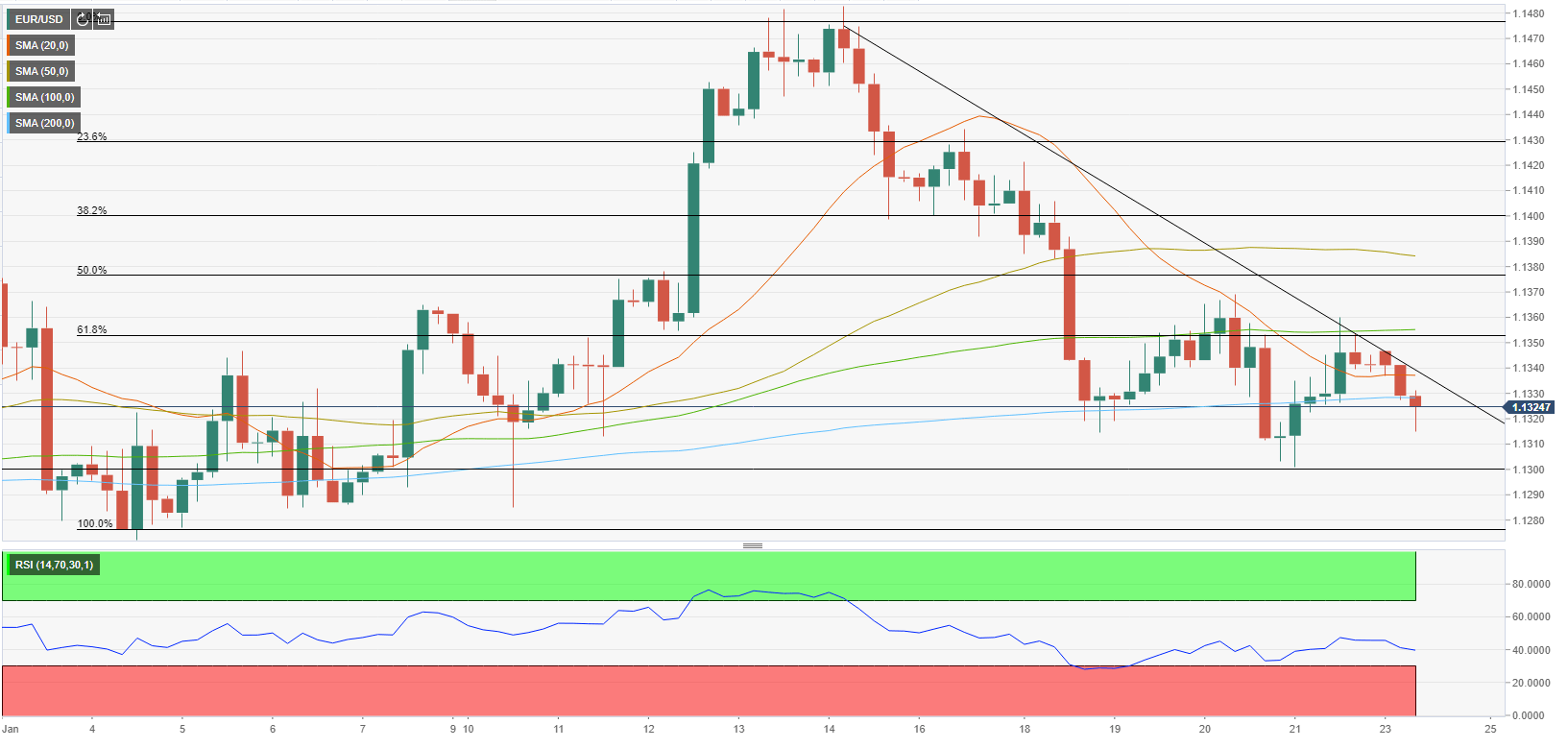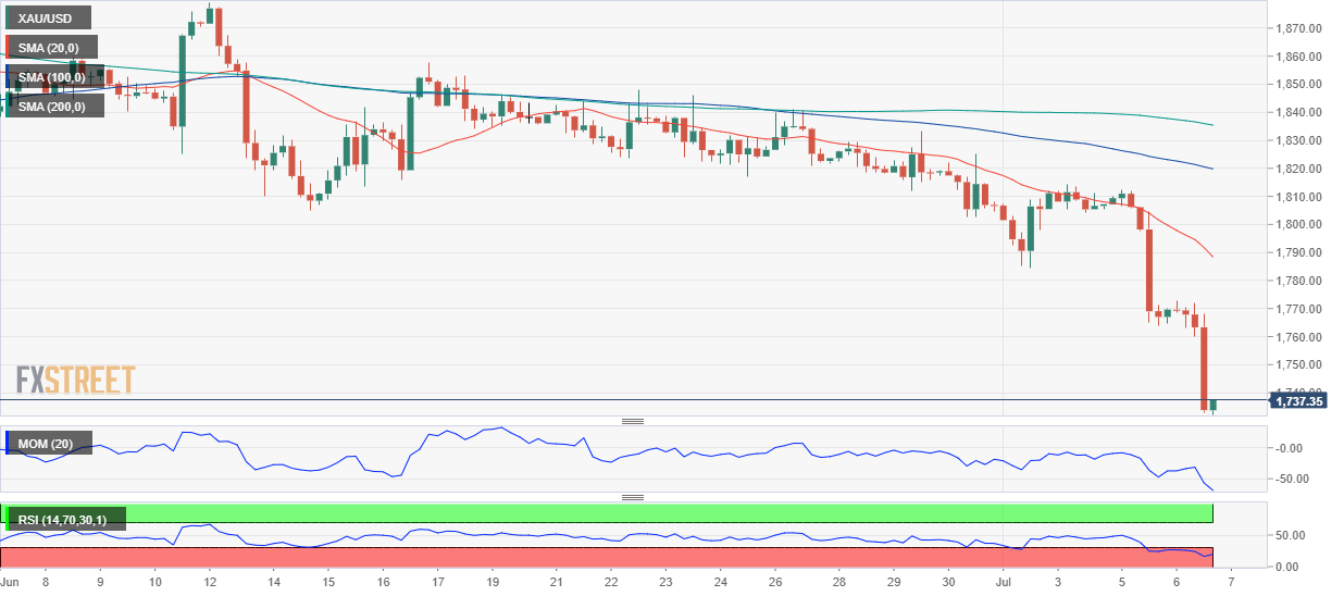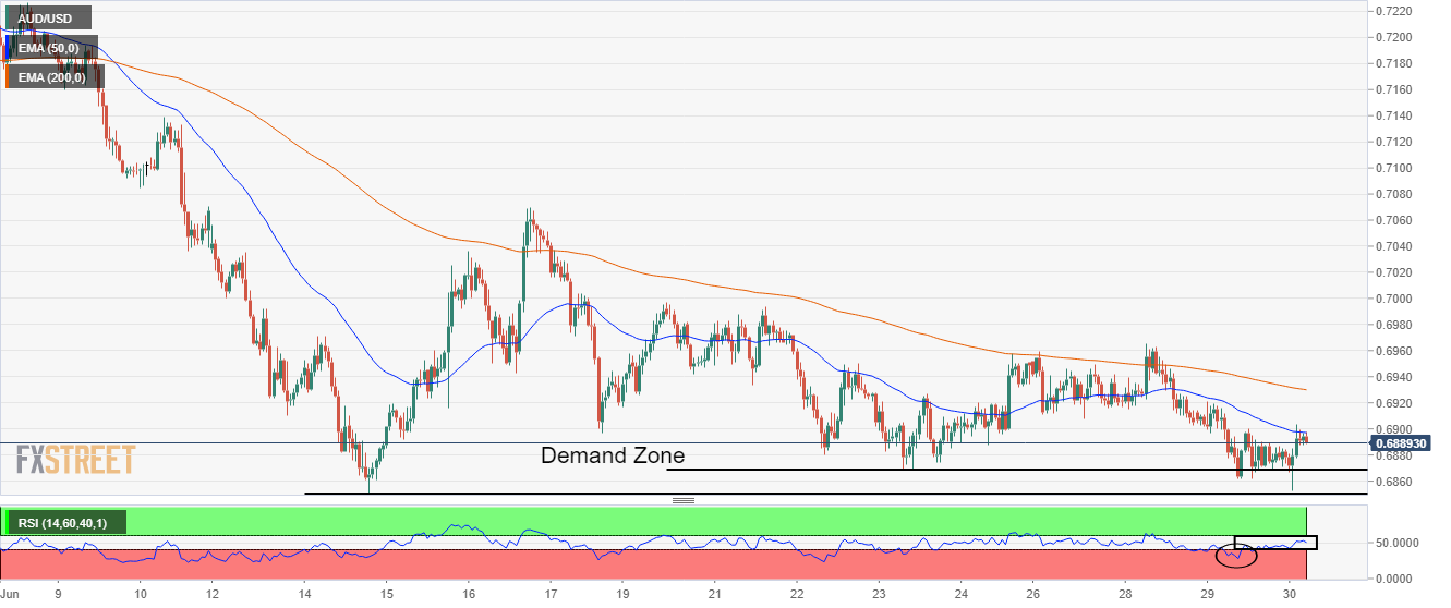 Garis tren miring ke bawah pola segitiga menurun telah bertindak sebagai barikade utama. Para pembeli AUD juga dapat menyerahkan support EMA 20 setelah EMA 50. RSI (14) telah bertemu dengan rintangan saat melintasi 60,00, yang menambah penghalang ke sisi bawah. Pasangan AUD/USD menunjukkan kinerja yang rentan di sesi Asia setelah gagal bertahan di atas rintangan penting di 0,6850. Aset ini sedang menyaksikan sesi perdagangan pembalikan yang bearish pada penolakan di saat pembukaan. Aset ini bergerak sedikit lebih tinggi setelah pembukaan yang datar, menemukan barikade di atas rintangan penting 0,6850, tergelincir lebih rendah dan melanjutkan penurunan setelah tergelincir di bawah harga pembukaan di 0,6840. Pada skala empat jam, pasangan mata uang ini telah bertemu dengan resistance setelah mencoba menembus di atas pola segitiga menurun dengan garis trennya yang miring ke bawah diplot dari level tertinggi 16 Juni di 0,7070. Sementara support horizontal ditempatkan dari level terendah 1 Juli di 0,6764. Penawaran jual aset ini meningkat karena telah menghadapi pertarungan yang sulit melawan Exponential Moving Average (EMA) 50 periode di 0,6848. Para pembeli mungkin menyerahkan batas bawah EMA 20 di 0,6835, yang dapat mendukung bias ke sisi bawah. Sementara itu, Relative Strength Index (RSI (14) telah menghadapi resistance di sekitar 60,00 dan telah tergelincir lebih rendah, yang mengindikasikan bahwa aset ini tidak lagi bullish untuk saat ini. Jika aset tersebut turun di bawah level terendah 1 Juli di 0,6766, para pembeli Greenback akan menyeret aset ini menuju level tertinggi 29 Mei 2020 di 0,6683. Pelanggaran level yang terakhir ini akan menyeret aset tersebut menuju tertinggi 30 April 2020 di 0,6570. Sebaliknya, para pembeli Greenback dapat kehilangan cengkeramannya jika aset tersebut melanggar tertinggi hari Selasa di 0,6896. Kejadian yang sama akan mendorong aset tersebut menuju tertinggi 30 Juni di 0,6920, diikuti oleh tertinggi 28 Juni di 0,6965. Grafik Empat Jam AUD/USD Level-Level Teknis AUD/USD Tinjauan Harga terakhir hari ini 0.6826 Perubahan harian hari ini -0.0049 Perubahan harian hari ini % -0.71 Pembukaan harian hari ini 0.6875 Tren SMA 20 Harian 0.6903 SMA 50 Harian 0.7014 SMA 100 Harian 0.7183 SMA 200 Harian 0.7213 Level Tinggi Harian Sebelumnya 0.6875 Rendah Harian Sebelumnya 0.6792 Tinggi Mingguan Sebelumnya 0.6896 Rendah Mingguan Sebelumnya 0.6761 Tinggi Bulanan Sebelumnya 0.7283 Rendah Bulanan Sebelumnya 0.685 Fibonacci Harian 38,2% 0.6843 Fibonacci Harian 61,8% 0.6823 Pivot Point Harian S1 0.6819 Pivot Point Harian S2 0.6764 Pivot Point Harian S3 0.6736 Pivot Point Harian R1 0.6903 Pivot Point Harian R2 0.6931 Pivot Point Harian R3 0.6986