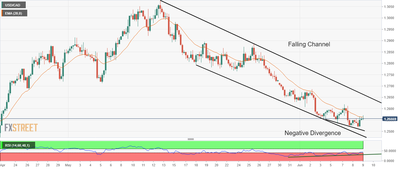 Pembeli CAD telah melemah pada Divergensi Negatif. RSI (14) telah mengisyaratkan hilangnya momentum, yang menganjurkan pembalikan bullish. Pembeli Greenback telah menyerang EMA-20 di 1,2650. Pasangan USD/CAD telah menembus konsolidasi naik yang terbentuk di kisaran 1,2550-1,2565 di sesi Asia. Kenaikan Greenback telah mengukur kemunduran dari level terendah bulanannya di 1,2518 dan berusaha mengubah pullback menjadi pembalikan bullish. Kelelahan dalam tren turun melemahkan pembeli CAD. Osilator momentum, Relative Strength Index (RSI) telah menunjukkan hilangnya momentum penurunan. Aset ini membentuk posisi terendah yang lebih rendah secara terus menerus sementara RSI (14) membentuk posisi higher low, yang menandakan bahwa kenaikan CAD kehabisan tenaga sekarang. Selain itu, pergerakan pullback mendukung tanda-tanda pembalikan bullish. Pada catatan yang lebih luas, aset tersebut melelang di Falling Channel, yang menandakan kelanjutan dari pergerakan penurunan sampai aset kelelahan dalam hal yang sama. Pembeli Greenback telah menyerang Exponential Moving Average (EMA) 20 periode di 1,2560 dan keberlanjutan di atas itu akan memperkuat Greenback lebih lanjut. Pergerakan yang menentukan di atas resistensi level bulat di 1,2600 akan mendorong aset menuju level terendah 30 Mei di 1,2651, diikuti oleh terendah 26 April di 1,2685. Di sisi lain, kenaikan CAD dapat menguat lebih lanjut jika aset turun di bawah level terendah Rabu di 1,2620. Ini akan menyeret aset ke arah support psikologis 1,2500. Penurunan di bawah 1,2500 akan membuat aset lebih turun menuju level terendah 19 Januari di 1,2450. Grafik empat jam USD/CAD Level Teknis USD/CAD Tinjauan Harga terakhir hari ini 1.2559 Perubahan harian hari ini 0.0000 Perubahan harian hari ini % 0.00 Pembukaan harian hari ini 1.2559 Tren SMA 20 Harian 1.2744 SMA 50 Harian 1.2718 SMA 100 Harian 1.2701 SMA 200 Harian 1.2661 Level Tinggi Harian Sebelumnya 1.2565 Rendah Harian Sebelumnya 1.2518 Tinggi Mingguan Sebelumnya 1.2714 Rendah Mingguan Sebelumnya 1.2551 Tinggi Bulanan Sebelumnya 1.3077 Rendah Bulanan Sebelumnya 1.2629 Fibonacci Harian 38,2% 1.2547 Fibonacci Harian 61,8% 1.2536 Pivot Point Harian S1 1.2529 Pivot Point Harian S2 1.25 Pivot Point Harian S3 1.2482 Pivot Point Harian R1 1.2577 Pivot Point Harian R2 1.2595 Pivot Point Harian R3 1.2624