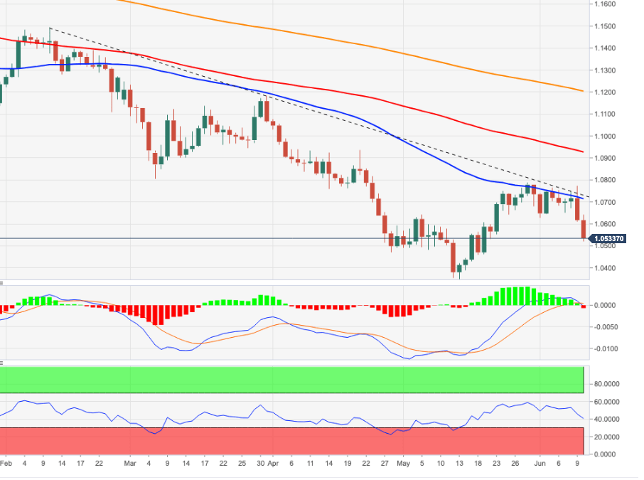 EUR/USD turun tajam ke area 1,0520 pada hari Jumat. Penurunan lebih lanjut dapat mengunjungi kembali terendah 2022. EUR/USD menambah penurunan Kamis dan mencetak terendah baru multi-minggu di dekat 1,0520 pada akhir minggu. Ketidakmampuan spot untuk melampaui garis resistance 4-bulan di dekat 1,0730, kurangnya kejutan dari ECB dan IHK AS bulan Mei terlalu berat untuk mata uang Eropa. Terhadap keadaan di atas, kelanjutan pullback dapat membuka kemungkinan kunjungan ke terendah 2022 di dekat 1,0350 (13 Mei). Dalam jangka lebih panjang, pandangan bearish pasangan mata uang ini diperkirakan akan bertahan selama diperdagangkan di bawah SMA 200-hari di 1,1202. Grafik harian EUR/USD level-level teknis EUR/USD Tinjauan Harga terakhir hari ini 1.054 Perubahan harian hari ini -0.0077 Perubahan harian hari ini % -0.73 Pembukaan harian hari ini 1.0617 Tren SMA 20 Harian 1.0647 SMA 50 Harian 1.069 SMA 100 Harian 1.0935 SMA 200 Harian 1.1211 Level Tinggi Harian Sebelumnya 1.0774 Rendah Harian Sebelumnya 1.0611 Tinggi Mingguan Sebelumnya 1.0787 Rendah Mingguan Sebelumnya 1.0627 Tinggi Bulanan Sebelumnya 1.0787 Rendah Bulanan Sebelumnya 1.035 Fibonacci Harian 38,2% 1.0673 Fibonacci Harian 61,8% 1.0712 Pivot Point Harian S1 1.0561 Pivot Point Harian S2 1.0505 Pivot Point Harian S3 1.0398 Pivot Point Harian R1 1.0724 Pivot Point Harian R2 1.083 Pivot Point Harian R3 1.0886