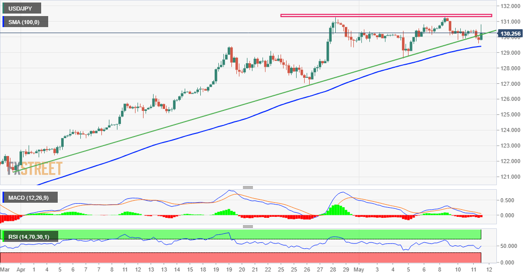 USD/JPY turun setelah membukukan penutupan harian tertinggi dalam 20 tahun. MACD dan RSI mengisyaratkan kenaikan lebih lanjut tetapi penembusan tegas di 131,00 menjadi penting bagi para pembeli. Konvergensi 10-DMA dan 20-DMA mendahului garis support berusia tiga bulan untuk membatasi penurunan jangka pendek. USD/JPY mengambil penawaran jual yang memperbarui level terendah intraday di sekitar 130,55 karena pasangan yen ini mencetak satu pullback lagi dari rintangan 131,00 selama sesi Asia hari Senin. Namun, penutupan harian hari Jumat, tertinggi sejak awal 2002, bergabung dengan sinyal MACD yang lebih kuat baru-baru ini dan RSI yang optimis akan membuat para pembeli USD/JPY tetap optimis dapat mengatasi resistance kunci 131,00. Setelah itu, kenaikan pasangan menuju Ekspansi Fibonacci (FE) 61,8% dari pergerakan Maret-Mei, di sekitar 132.60, tampaknya akan segera terjadi. Jika USD/JPY tetap lebih kuat melewati 132,60, para pembeli dapat membidik tertinggi tahun 2002 di sekitar 135,20. Sebaliknya, pertemuan 10-DMA dan 20-DMA di dekat 128,70-60, membatasi pullback langsung pasangan mata iang ini bergerak di depan garis support miring ke atas dari awal Maret, di sekitar 127,95 pada saat berita ini ditulis. Jika harga USD/JPY turun di bawah 127,95, terendah bulan Mei di sekitar 126,35 dan tertinggi Maret di 125,10 akan berada dalam fokus. USD/JPY: Grafik Harian Tren: Bullish Level-Level Teknis USD/JPY Tinjauan Harga terakhir hari ini 130.59 Perubahan harian hari ini -0.29 Perubahan harian hari ini % -0.22 Pembukaan harian hari ini 130.88 Tren SMA 20 Harian 128.71 SMA 50 Harian 127.38 SMA 100 Harian 121.73 SMA 200 Harian 117.37 Level Tinggi Harian Sebelumnya 130.98 Rendah Harian Sebelumnya 129.68 Tinggi Mingguan Sebelumnya 130.98 Rendah Mingguan Sebelumnya 126.95 Tinggi Bulanan Sebelumnya 131.35 Rendah Bulanan Sebelumnya 126.36 Fibonacci Harian 38,2% 130.49 Fibonacci Harian 61,8% 130.18 Pivot Point Harian S1 130.05 Pivot Point Harian S2 129.22 Pivot Point Harian S3 128.76 Pivot Point Harian R1 131.35 Pivot Point Harian R2 131.81 Pivot Point Harian R3 132.64