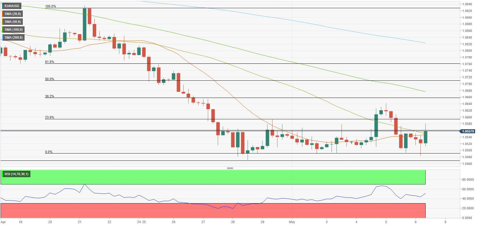Penembusan ke bawah formasi H&S telah menopang para pembeli greenback. EMA periode 50 dan 200 hampir menunjukkan death cross. RSI (14) telah bergeser ke kisaran bearish di 20,0-40,00. Pasangan EUR/USD diperdagangkan bolak-balik dalam kisaran sempit di 1,0644-1,0654 di sesi Asia. Mata uang naik bersama telah menyaksikan aksi jual ekstrem pada hari Rabu setelah tergelincir di bawah support level angka bulat di 1,0700. Penembusan di bawah pola Head and Shoulder pada grafik per jam memperkuat para pembeli greenback untuk sesi perdagangan yang akan datang. Biasanya, pembentukan pola grafik yang disebutkan di atas menampilkan distribusi inventaris yang berkepanjangan di mana investor institusional mengalihkan investor mereka ke peserta ritel. Death cross sangat diharapkan dari aset ini karena Exponential Moving Averages (EMA) periode 50 dan 200 akan menemukan crossover bearish di sekitar 1,0700. Sementara itu, Relative Strength Index (RSI) (14) telah bergeser ke kisaran bearish di 20,00-40,00, yang memperkuat para pembeli greenback. Pergerakan pullback menuju EMA 200 di 1,0686 akan menjadi peluang penjualan yang optimal bagi para penjual yang mencari harga murah, yang akan menyeret aset ini ke level terendah hari Rabu di 1,0623. Pelanggaran level yang terakhir ini akan melepaskan para pembeli greenback sehingga lebih banyak penurunan menuju tertinggi 20 Mei di 1,0600. Di sisi lain, para pembeli di Zona Euro bisa mendapatkan kembali kejayaannya jika aset ini melampaui tertinggi hari Selasa di 1,0747. Hal tersebut akan mendorong aset ini menuju tertinggi hari Senin di 1,0786, diikuti oleh terendah 13 Mei di 1,0809. Grafik Per Jam EUR/USD Level-Level Teknis EUR/USD Tinjauan Harga terakhir hari ini 1.0659 Perubahan harian hari ini 0.0011 Perubahan harian hari ini % 0.10 Pembukaan harian hari ini 1.0648 Tren SMA 20 Harian 1.0591 SMA 50 Harian 1.0731 SMA 100 Harian 1.0975 SMA 200 Harian 1.1244 Level Tinggi Harian Sebelumnya 1.0739 Rendah Harian Sebelumnya 1.0627 Tinggi Mingguan Sebelumnya 1.0765 Rendah Mingguan Sebelumnya 1.0552 Tinggi Bulanan Sebelumnya 1.0787 Rendah Bulanan Sebelumnya 1.035 Fibonacci Harian 38,2% 1.067 Fibonacci Harian 61,8% 1.0696 Pivot Point Harian S1 1.0604 Pivot Point Harian S2 1.0559 Pivot Point Harian S3 1.0491 Pivot Point Harian R1 1.0716 Pivot Point Harian R2 1.0784 Pivot Point Harian R3 1.0828