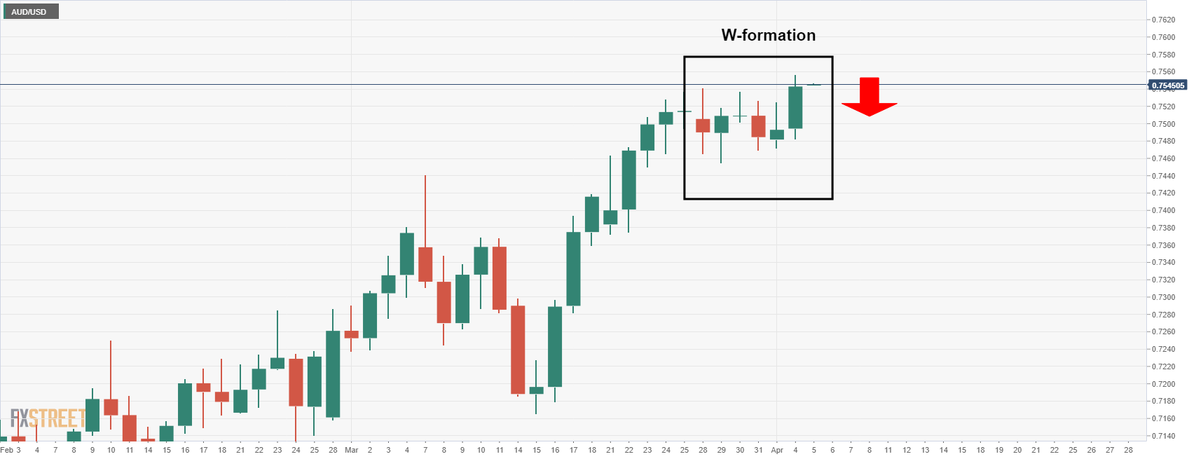 AUD/USD bertahan di atas 0,7180 di tengah tekanan jual di DXY. Sentimen pasar yang positif telah menopang mata uang yang dipersepsikan risiko. NFP AS bisa jatuh ke 310 ribu sementara PDB tahunan Australia dapat anjlok ke 1,6%. Pasangan AUD/USD bertahan kuat di dekat tertinggi minggu sebelumnya di 0,7189 karena dorongan risk-on telah disukai oleh para pelaku pasar pada ekspektasi slippage dalam Nonfarm Payrolls (NFP) AS. Mata uang yang sensitif terhadap risiko ini mendapatkan banyak traksi dan greenback telah dikesampingkan oleh para investor. Mata uang utama ini bergerak tajam untuk menguji kembali tertinggi bulanannya di 0,7266 menjelang data Produk Domestik Bruto (PDB) dari Australia dan NFP dari AS. Indeks dolar AS (DXY) telah jatuh pada awal perdagangan ke posisi terendah bulanannya di 101,43. Perkiraan NFP AS yang lebih rendah telah memaksa para pelaku pasar untuk membuang aset-aset safe-haven. Perkiraan awal untuk NFP AS adalah 310 Ribu terhadap cetakan sebelumnya 428 Ribu. NFP AS yang lebih rendah dapat mengurangi sikap hawkish oleh Federal Reserve (The Fed). Hal ini mungkin hanya menghasilkan satu lagi kenaikan suku bunga 50 basis poin (bp) oleh The Fed tahun ini daripada ekspektasi tiga kenaikan suku bunga jumbo. Di sisi Australia, para investor sedang menunggu rilis data PDB pada hari Rabu. PDB tahunan diperkirakan akan anjlok menjadi 1,6% terhadap cetakan sebelumnya sebesar 4,2%. Sementara angka kuartalan mungkin tergelincir menjadi 0,6% versus 3,4% cetakan sebelumnya. Kinerja suram dari mata uang antipodean ini dapat melemahkan pasangan mata uang ini ke depan.