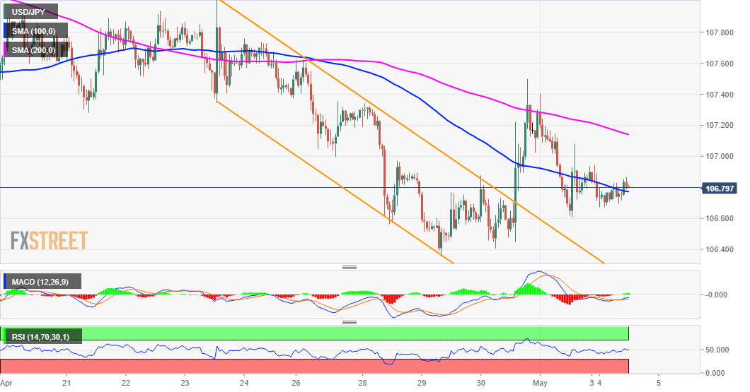 USD/JPY tetap tertekan di sekitar level terendah bulanan, memperbarui terendah harian akhir-akhir ini. Perdagangan berkelanjutan di bawah SMA 200 dan tidak adanya RSI oversold membuat para pembeli tetap optimis. Support horizontal bulanan mendapatkan perhatian para penjual dan garis tren turun berusia dua minggu menambah penghalang ke sisi bawah. USD/JPY mengambil tawaran jual untuk menyegarkan terendah intraday di sekitar 127,50 selama sesi Asia hari Senin. Dengan demikian, pasangan yen ini membenarkan pembalikan arah hari Jumat dari SMA 200 sambil memudarkan pemantulan sebelumnya dari support horizontal berusia satu bulan. Selain kegagalan untuk melewati SMA 200, melemahnya RSI (14), tidak oversold, juga mendukung bias bearish yang menargetkan zona support 127,00-126,95. Namun, Fibonacci retracements 50% dan 61,8% dari pergerakan naik pasangan USD/JPY selama periode akhir Maret hingga awal Mei, masing-masing di sekitar 126,30 dan 125,10, dapat menantang para penjual pasangan mata uang ini sesudahnya. Sebaliknya, penembusan tegas sisi atas dari SMA 200, di sekitar 128,25 pada saat berita ini ditulis, tidak akan menarik para pembeli karena garis tren miring ke bawah dari 9 Mei, di dekat 128,95 baru-baru ini, akan menguji pergerakan naik USD/JPY. Yang juga bertindak sebagai penghalang ke sisi atas adalah level acuan 129,00, penembusan yang dapat mendorong harga menuju puncak bulanan 131,34. Secara keseluruhan, USD/JPY memiliki ruang ke sisi bawah lebih lanjut tetapi para penjual memiliki jalan panjang untuk melakukan perjalanan agar dapat merebut kembali kendali. USD/JPY: Grafik Empat Jam Tren: Diperkirakan akan terjadi penurunan lebih lanjut Level-Level Teknis USD/JPY Tinjauan Harga terakhir hari ini 127.37 Perubahan harian hari ini -0.53 Perubahan harian hari ini % -0.41 Pembukaan harian hari ini 127.9 Tren SMA 20 Harian 129.27 SMA 50 Harian 125.69 SMA 100 Harian 120.42 SMA 200 Harian 116.44 Level Tinggi Harian Sebelumnya 128.3 Rendah Harian Sebelumnya 127.53 Tinggi Mingguan Sebelumnya 129.78 Rendah Mingguan Sebelumnya 127.02 Tinggi Bulanan Sebelumnya 131.26 Rendah Bulanan Sebelumnya 121.67 Fibonacci Harian 38,2% 128 Fibonacci Harian 61,8% 127.82 Pivot Point Harian S1 127.52 Pivot Point Harian S2 127.14 Pivot Point Harian S3 126.75 Pivot Point Harian R1 128.29 Pivot Point Harian R2 128.68 Pivot Point Harian R3 129.06