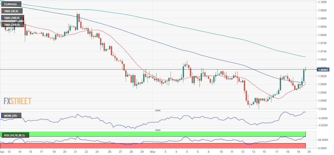 EUR/USD goyah sekali lagi tepat di depan 1,0600. Pemulihan tambahan akan menargetkan puncak bulanan di 1,0641. EUR/USD bergerak naik turun di area di bawah tolok ukur 1,0600 pada hari ini. Mempertimbangkan aksi harga pasangan yang sedang berlangsung, kelanjutan rebound tampaknya mungkin dalam waktu dekat setidaknya. Penghalang berikutnya muncul di tertinggi Mei di 1,0641 (5 Mei) menjelang rintangan sementara di SMA 55 hari, hari ini di 1,0792. Di bawah garis 3 bulan di dekat 1,0860, pasangan ini diperkirakan akan tetap di bawah tekanan dan rentan terhadap penurunan tambahan. Grafik harian EUR/USD Level Teknis EUR/USD Tinjauan Harga terakhir hari ini 1.058 Perubahan harian hari ini -7 Perubahan harian hari ini % -0.07 Pembukaan harian hari ini 1.0587 Tren SMA 20 Harian 1.0546 SMA 50 Harian 1.0786 SMA 100 Harian 1.1033 SMA 200 Harian 1.1291 Level Tinggi Harian Sebelumnya 1.0607 Rendah Harian Sebelumnya 1.0461 Tinggi Mingguan Sebelumnya 1.0592 Rendah Mingguan Sebelumnya 1.035 Tinggi Bulanan Sebelumnya 1.1076 Rendah Bulanan Sebelumnya 1.0471 Fibonacci Harian 38,2% 1.0551 Fibonacci Harian 61,8% 1.0517 Pivot Point Harian S1 1.0497 Pivot Point Harian S2 1.0406 Pivot Point Harian S3 1.0351 Pivot Point Harian R1 1.0642 Pivot Point Harian R2 1.0698 Pivot Point Harian R3 1.0788