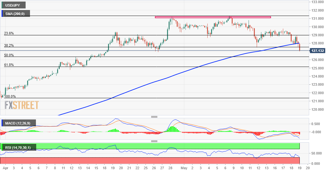Kombinasi berbagai faktor mendorong penjualan agresif di sekitar USD/JPY pada hari Kamis. Lingkungan risk-off yang lazim memberikan dorongan kuat untuk safe-haven JPY. Penurunan tajam dalam imbal hasil obligasi AS membebani USD dan memperkuat bias penjualan. Pasangan USD/JPY berusaha keras untuk memanfaatkan pergerakan positif awal dan menyaksikan pembalikan arah dari lingkungan 129,00 pada hari Kamis. Penurunan intraday yang tajam – mencatat hari kedua berturut-turut dari pergerakan negatif – menyeret harga spot ini ke level terendah baru bulanan, di sekitar level 127,00 selama awal sesi Amerika Utara. Kekhawatiran yang berkembang terkait pelunakan pertumbuhan ekonomi global terus membebani sentimen para investor dan memicu gelombang baru perdagangan penghindaran risiko. Ini terbukti dari lautan merah di seluruh pasar ekuitas, yang mendorong permintaan untuk yen Jepang safe-haven tradisional dan memberikan tekanan berat ke bawah pada pasangan USD/JPY. Aliran anti-risiko menyebabkan penurunan tajam dalam imbal hasil obligasi pemerintah AS, yang mendorong penjualan dolar AS yang agresif dan selanjutnya berkontribusi pada nada tawaran jual di sekitar pasangan USD/JPY. Lintasan ke bawah selanjutnya dapat dikaitkan dengan beberapa penjualan teknis pada penembusan berkelanjutan di bawah level angka bulat 128,00. Kelemahan berikutnya di bawah area 127,50 (terendah bulanan sebelumnya), bertepatan dengan level Fibonacci retracement 38,2% dari rally 121,28-131,35, dapat dilihat sebagai pemicu baru bagi para pedagang bearish. Beberapa tindak lanjut penjualan di bawah level angka bulat 127,00 akan menegaskan kembali prospek negatif dan membuka jalan bagi penurunan lebih lanjut. Pasangan USD/JPY kemudian dapat mempercepat penurunan menuju pengujian support relevan berikutnya yang dicatat oleh level Fibo 50%, di sekitar wilayah 126,25, sebelum akhirnya turun ke level 126,00. Penurunan korektif selanjutnya dapat berlanjut menuju level psikologis kunci 125,00, yang akan bertindak sebagai basis jangka pendek untuk harga spot ini. Di sisi lain, upaya pemulihan kembali di atas penembusan support 127,50 (level Fibo 38,2%) sekarang dapat dilihat sebagai peluang penjualan. Ini, pada gilirannya, akan membatasi pasangan USD/JPY di dekat level 128,00, yang diikuti oleh resistance di dekat wilayah 128,30. Penembusan meyakinkan level yang terakhir akan memungkinkan para pembeli membidik kembali untuk merebut lagi level 129,00. Grafik 4 Jam USD/JPY Level-Level Teknis USD/JPY Tinjauan Harga terakhir hari ini 129.2 Perubahan harian hari ini -0.24 Perubahan harian hari ini % -0.19 Pembukaan harian hari ini 129.44 Tren SMA 20 Harian 129.3 SMA 50 Harian 125 SMA 100 Harian 120.03 SMA 200 Harian 116.17 Level Tinggi Harian Sebelumnya 129.78 Rendah Harian Sebelumnya 128.83 Tinggi Mingguan Sebelumnya 131.35 Rendah Mingguan Sebelumnya 127.52 Tinggi Bulanan Sebelumnya 131.26 Rendah Bulanan Sebelumnya 121.67 Fibonacci Harian 38,2% 129.42 Fibonacci Harian 61,8% 129.19 Pivot Point Harian S1 128.92 Pivot Point Harian S2 128.4 Pivot Point Harian S3 127.96 Pivot Point Harian R1 129.87 Pivot Point Harian R2 130.3 Pivot Point Harian R3 130.82