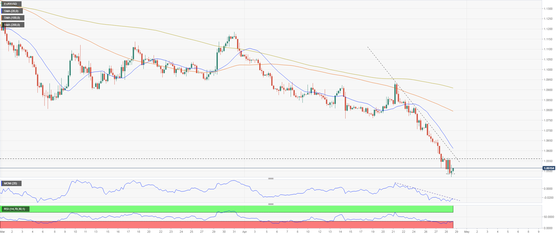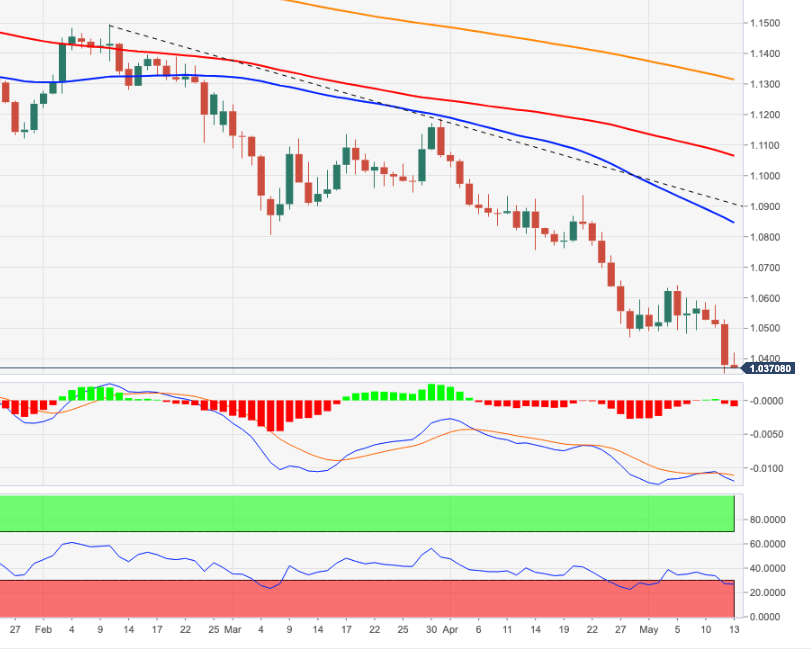EUR/USD berosilasi dalam kisaran 7-pip setelah rebound ringan. Pembeli Greenback berfokus pada rilis CSI Michigan. Ketua Fed Powell secara tak terduga menambahkan alternatif dari dua kenaikan suku bunga jumbo lagi tahun ini. EUR/USD menampilkan kinerja tanpa kilau di sesi Asia. Pasangan ini berosilasi dalam kisaran yang sedikit lebih rendah dari 1,0391-1,0398 meskipun ada penurunan yang sedikit sehat dalam Indeks Dolar AS (DXY). Kenaikan Euro jatuh secara signifikan pada hari Kamis setelah Biro Statistik Tenaga Kerja AS meluncurkan angka Indeks Harga Produsen (IHP). IHP AS mendarat di 11% vs 10,7% ekspektasi secara tahunan. Indikator yang sah untuk menampilkan inflasi komoditas memperkuat Greenback terhadap mata uang bersama. Wawancara ketua Federal Reserve (Fed) Jerome Powell dengan program radio nasional Marketplace secara tak terduga menambahkan opsi dua kenaikan suku bunga jumbo lagi berturut-turut dalam pertemuan kebijakan berikutnya. Sebelumnya, jalan mengharapkan satu lagi kenaikan suku bunga jumbo hanya di atas elevasi 50 basis poin (bp) yang diumumkan pada pekan pertama Mei. Sekarang, mantra kenaikan suku bunga agresif yang semakin lama akan memacu ketidakpastian dalam domain FX. Sementara itu, pembeli Euro masih membahas embargo impor minyak Rusia. Meskipun penarikan oposisi oleh Jerman untuk melarang minyak Rusia dengan catatan tiba-tiba, Uni Eropa (UE) menghadapi hambatan hambatan rantai pasokan, produksi minyak yang terbatas, dan kekhawatiran pengangguran untuk mengumumkan embargo minyak yang ditunggu-tunggu dari Moskow. Pada sesi hari ini, Indeks Sentimen Konsumen (CSI) Michigan AS signifikan. Katalis diperkirakan akan mendarat di 64 dibandingkan angka sebelumnya 65,2. Kinerja data CSI Michigan yang lebih baik akan menambah bahan bakar untuk pembeli Greenback. Level Teknis EUR/USD Tinjauan Harga terakhir hari ini 1.0396 Perubahan harian hari ini 0.0016 Perubahan harian hari ini % 0.15 Pembukaan harian hari ini 1.038 Tren SMA 20 Harian 1.0627 SMA 50 Harian 1.0832 SMA 100 Harian 1.1074 SMA 200 Harian 1.1322 Level Tinggi Harian Sebelumnya 1.053 Rendah Harian Sebelumnya 1.0354 Tinggi Mingguan Sebelumnya 1.0642 Rendah Mingguan Sebelumnya 1.0483 Tinggi Bulanan Sebelumnya 1.1076 Rendah Bulanan Sebelumnya 1.0471 Fibonacci Harian 38,2% 1.0421 Fibonacci Harian 61,8% 1.0462 Pivot Point Harian S1 1.0313 Pivot Point Harian S2 1.0246 Pivot Point Harian S3 1.0137 Pivot Point Harian R1 1.0488 Pivot Point Harian R2 1.0597 Pivot Point Harian R3 1.0664