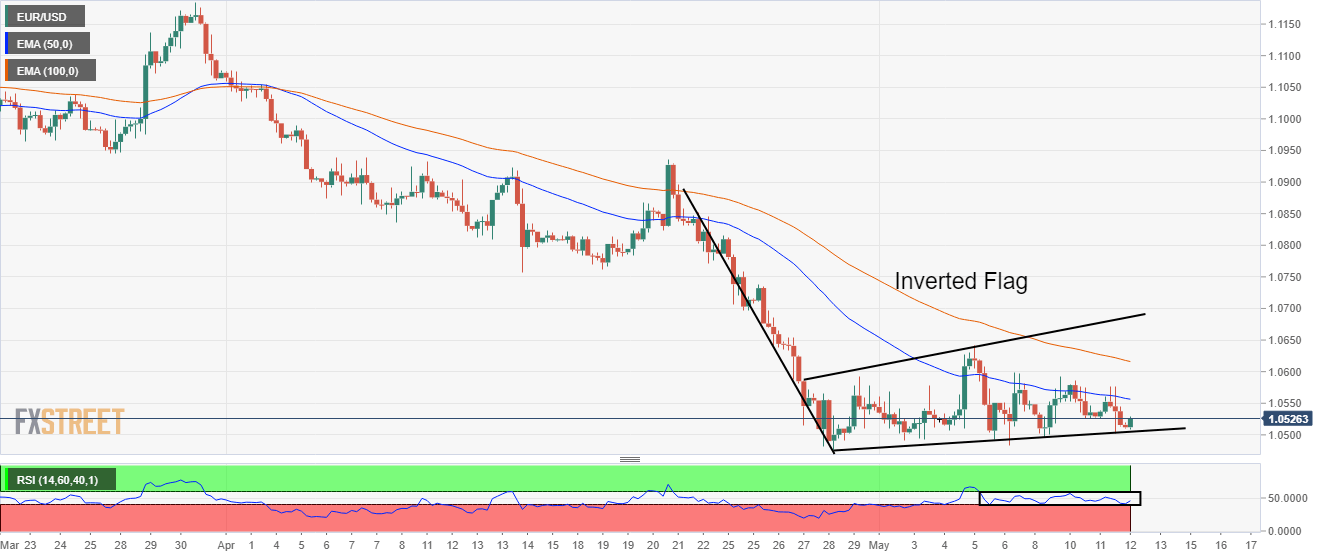 Penurunan akan tetap didukung pada formasi grafik Inverted Flag. RSI (14) perlu jatuh di bawah 40,00 untuk memvalidasi pengaturan bearish. Konsolidasi kisaran yang lebih luas menunjukkan terobosan yang lebih kuat di kedua sisi. Pasangan EUR/USD telah menyaksikan rebound kecil setelah mencetak level terendah 1,0507 di sesi Asia. Aset ini berosilasi dalam kisaran yang lebih luas dari 1,0483-1,0642 sejak 28 April setelah menyaksikan pergerakan penurunan tipis dari 1,0936 pada 21 April. Pada grafik empat jam, pembentukan Inverted Flag menunjukkan akan ada lebih banyak penurunan. Biasanya, formasi grafik Inverted Flag menunjukkan penempatan penawaran oleh penjual inisiatif. Perspektif penjualan inisiatif menandakan kelanjutan distribusi inventaris setelah pergerakan turun. Pasangan mata uang utama ini terus merasakan barikade dari Exponential Moving Average (EMA) 50 periode, yang diperdagangkan di 1,0556. Sedangkan EMA-100 di 1,0615 jauh di atas harga aset yang menambah filter sisi bawah. Relative Strength Index (RSI) (14) berosilasi bolak-balik dalam kisaran 40,00-60,00, yang menandakan konsolidasi ke depan. Selanjutnya, penurunan di bawah level terendah Jumat di 1,0483 akan menyeret aset menuju level terendah 29 Desember 2016 di 1,0408, diikuti oleh level terendah 20 Desember 2016 di 1,0352. Atau, terobosan tertinggi pekan sebelumnya di 1,0642 akan mengirim aset menuju resistensi level bulat di 1,0700. Jika ditembus akan mendorong aset lebih jauh ke level terendah 19 April di 1,0761. Grafik empat jam EUR/USD Level Teknis EUR/USD Tinjauan Harga terakhir hari ini 1.0517 Perubahan harian hari ini 4 Perubahan harian hari ini % 0.04 Pembukaan harian hari ini 1.0513 Tren SMA 20 Harian 1.0649 SMA 50 Harian 1.0846 SMA 100 Harian 1.1084 SMA 200 Harian 1.1329 Level Tinggi Harian Sebelumnya 1.0577 Rendah Harian Sebelumnya 1.0502 Tinggi Mingguan Sebelumnya 1.0642 Rendah Mingguan Sebelumnya 1.0483 Tinggi Bulanan Sebelumnya 1.1076 Rendah Bulanan Sebelumnya 1.0471 Fibonacci Harian 38,2% 1.0531 Fibonacci Harian 61,8% 1.0548 Pivot Point Harian S1 1.0484 Pivot Point Harian S2 1.0455 Pivot Point Harian S3 1.0409 Pivot Point Harian R1 1.056 Pivot Point Harian R2 1.0606 Pivot Point Harian R3 1.0635