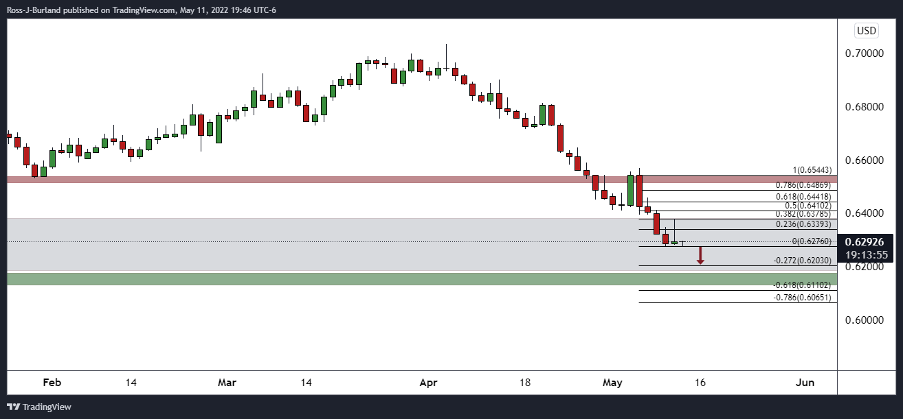 NZD/USD berkonsolidasi, menunggu dorongan berikutnya. Mengawasi penembusan support harian kritis. Survei Ekspektasi Kuartal 2 RBNZ akan datang hari ini dan tekanannya berasal dari sudut pandang teknis. NZD/USD telah tertekan dalam penurunan mingguan dengan fokus tertuju pada pergerakan untuk menguji 0,6170-an seperti yang digambarkan berikut: Grafik Mingguan NZD/USD Harga pasangan mata uang ini mengurangi ketidakseimbangan harga antara Juni 2020 dan April 2020 dengan bergerak sekitar 100 pip sampai pergerakan selesai. Grafik Harian NZD/USD Harga telah mengoreksi Fibonacciretracement 38,2% pada lonjakan dari perdagangan kemarin, tetapi mungkin ada beberapa lagi yang akan datang dalam hal itu sebelum bergerak lebih jauh ke sisi negatifnya. Grafik 1 Jam NZD/USD Harga berkonsolidasi pada grafik per jam dan para pedagang akan menunggu dorongan jika tidak ada jeda teknis dengan satu atau lain cara.