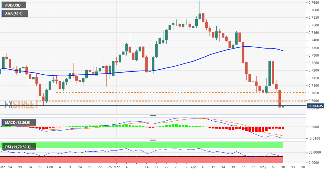 AUD/USD mengalami pergerakan short-covering intraday dari terendah baru tahun yang diraih sebelumnya Selasa ini. Kemunduran imbal hasil obligasi AS, dorongan risk-on merusak safe-haven USD dan memperpanjang dukungan. Kurangnya tindak lanjut aksi beli dan penerimaan di bawah 0,7000 mendukung pedagang bearish. Pasangan AUD/USD mementaskan pemulihan yang baik dari level terendah sejak Juni 2020 yang disentuh sebelumnya Selasa ini dan mempertahankan kenaikan intraday moderatnya sepanjang awal sesi Amerika Utara. Pasangan mata uang ini terakhir terlihat diperdagangkan di sekitar wilayah 0,6970, naik hampir 0,25% hari ini. Penurunan yang sedang berlangsung dalam imbal hasil obligasi Pemerintah AS, bersama dengan dorongan risk-on, membebani safe-haven dolar AS dan menguntungkan dolar Australia yang dianggap lebih berisiko. Meskipun demikian, kenaikan signifikan apa pun tampaknya masih sulit di tengah prospek pengetatan kebijakan yang lebih agresif oleh The Fed, yang akan terus bertindak sebagai pendorong untuk dolar AS. Dari sudut pandang teknis, penembusan level psikologis 0,7000 dan penurunan setelahnya di bawah terendah tahun sebelumnya, di sekitar area 0,6965, menandai titik tembus bearish baru. Selain itu, ketidakmampuan pasangan AUD/USD untuk memanfaatkan pemantulan intraday mengindikasikan bahwa tren bearish yang berusia satu bulan mungkin masih jauh dari selesai. Prospek negatif tersebut diperkuat oleh fakta bahwa indikator-indikator teknikal pada grafik harian bertahan jauh di dalam wilayah bearish dan masih jauh dari zona oversold. Oleh karena itu, pemulihan lebih lanjut mungkin masih dilihat sebagai peluang jual. Namun demikian, pedagang mungkin menahan diri dari menempatkan taruhan baru menjelang laporan IHK AS pada hari Rabu. Sementara itu, level 0,7000 sekarang tampaknya bertindak sebagai resistance langsung, di atasnya pertarungan short-covering dapat mengangkat harga spot ke zona horizontal 0,7055-0,7060. Zona tersebut seharusnya bertindak sebagai penghalang yang kuat dan membatasi sisi atas pasangan AUD/USD, setidaknya untuk saat ini. Di sisi lain, support langsung sekarang dipatok di dekat swing low harian, di sekitar area 0,6910. Beberapa tindak lanjut aksi jual di bawah 0,6900 akan menegaskan kembali bias bearish jangka pendek dan membuka jalan penurunan tambahan. Pasangan AUD/USD kemudian mungkin mempercepat lintasan ke bawah ke support menengah 0,6840-0,6835 kemudian 0,6800. Grafik harian AUD/USD level-level teknis AUD/USD Tinjauan Harga terakhir hari ini 0.6969 Perubahan harian hari ini 0.0015 Perubahan harian hari ini % 0.22 Pembukaan harian hari ini 0.6954 Tren SMA 20 Harian 0.7233 SMA 50 Harian 0.7336 SMA 100 Harian 0.7259 SMA 200 Harian 0.728 Level Tinggi Harian Sebelumnya 0.7074 Rendah Harian Sebelumnya 0.6944 Tinggi Mingguan Sebelumnya 0.7267 Rendah Mingguan Sebelumnya 0.7029 Tinggi Bulanan Sebelumnya 0.7662 Rendah Bulanan Sebelumnya 0.7054 Fibonacci Harian 38,2% 0.6993 Fibonacci Harian 61,8% 0.7024 Pivot Point Harian S1 0.6908 Pivot Point Harian S2 0.6861 Pivot Point Harian S3 0.6778 Pivot Point Harian R1 0.7037 Pivot Point Harian R2 0.712 Pivot Point Harian R3 0.7167