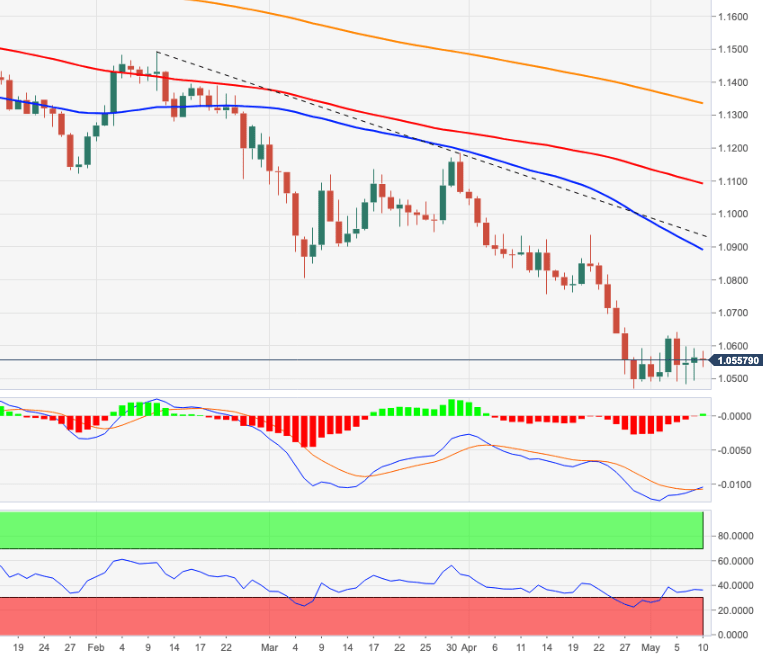 EUR/USD tampak akan memperpanjang pemantulan ke 1,0600 dan di atasnya. Tertinggi mingguan di 1,0641 muncul sebagai target berikutnya. EUR/USD menambah pemulihan mingguan, meskipun pengujian/penembusan penghalang 1,0600 tetap sulit untuk saat ini. Jika rebound mempercepat laju, maka pasangan mata uang ini awalnya seharusnya menargetkan angka bulat di 1,0600 sebelum tertinggi mingguan yang lebih relevan di 1,0641 (5 Mei). Di atas garis 3-bulan dekat 1,0930, tekanan jual diperkirakan akan sedikit berkurang. Area tersebut bertepatan dengan tertinggi mingguan yang tercatat pada 21 April. Grafik harian EUR/USD level-level teknis EUR/USD Tinjauan Harga terakhir hari ini 1.0545 Perubahan harian hari ini -0.0020 Perubahan harian hari ini % -0.19 Pembukaan harian hari ini 1.0565 Tren SMA 20 Harian 1.0683 SMA 50 Harian 1.087 SMA 100 Harian 1.11 SMA 200 Harian 1.1342 Level Tinggi Harian Sebelumnya 1.0592 Rendah Harian Sebelumnya 1.0495 Tinggi Mingguan Sebelumnya 1.0642 Rendah Mingguan Sebelumnya 1.0483 Tinggi Bulanan Sebelumnya 1.1076 Rendah Bulanan Sebelumnya 1.0471 Fibonacci Harian 38,2% 1.0555 Fibonacci Harian 61,8% 1.0532 Pivot Point Harian S1 1.0509 Pivot Point Harian S2 1.0454 Pivot Point Harian S3 1.0412 Pivot Point Harian R1 1.0606 Pivot Point Harian R2 1.0648 Pivot Point Harian R3 1.0704