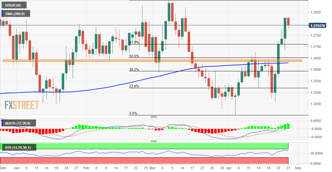 USD/CAD menarik beberapa aksi beli dan meraih tertinggi baru harian selama awal sesi Amerika Utara. Ekspektasi pengetatan lebih lanjut oleh The Fed bertindak sebagai pendorong untuk USD dan memperpanjang dukungan. Data ketenagakerjaan AS/Kanada yang beragam tidak banyak memberikan dorongan berarti bagi pasangan mata uang ini. Kenaikan harga minyak mentah menopang loonie dan menahan pembeli dari menempatkan taruhan agresif. Pasangan USD/CAD dengan cepat membalikkan penurunan awal sesi Amerika Utara dan melompat ke tertinggi baru harian, di sekitar wilayah 1,2875 pasca laporan tenaga kerja bulanan AS/Kanada. NFP menunjukkan bahwa ekonomi AS menambahkan 428 ribu pekerjaan baru di bulan April dibandingkan dengan antisipasi 391 ribu. Namun, data tersebut diimbangi oleh sedikit kekecewaan dari tingkat pengangguran, yang bertahan stabil di 3,6% dibandingkan antisipasi turun ke 3,5%. Selain itu, Pendapatan Per Jam Rata-rata juga meleset dari ekspektasi pasar dan naik 0,3% MoM di bulan April. Data ketenagakerjaan AS yang beragam tidak banyak memberikan dorongan, meskipun ekspektasi bahwa The Fed perlu mengambil tindakan yang lebih drastis untuk mengendalikan inflasi bertindak sebagai pendorong untuk dolar AS. Faktanya, pasar masih memperkirakan kenaikan suku bunga 200 bps lebih lanjut untuk sisa tahun 2022, yang terbukti dari kenaikan baru dalam imbal hasil obligasi Pemerintah AS. Terlepas dari itu, nada yang secara umum lebih lemah di sekitar pasar ekuitas semakin mendorong aliran safe haven menuju greenback. Itu, bersama dengan data ketenagakerjaan Kanada yang agak tidak mengesankan, bertindak sebagai pendorong untuk pasangan USD/CAD. Statistik Kanada melaporkan bahwa jumlah orang yang bekerja naik 15,3 ribu di bulan April, dibandingkan dengan antisipasi 55 ribu, dan tingkat pengangguran turun tipis ke 5,2%. Namun, data tersebut diimbangi oleh kenaikan moderat dalam harga minyak mentah, yang memperpanjang beberapa dukungan untuk loonie yang terkait komoditas dan membatasi kenaikan lebih lanjut pasangan USD/CAD. Oleh karena itu, akan lebih bijaksana menunggu beberapa tindak lanjut aksi beli sebelum pedagang mulai memposisikan diri untuk perpanjangan apresiasi yang disaksikan selama sekitar dua minggu terakhir. level-level teknis USD/CAD Tinjauan Harga terakhir hari ini 1.2861 Perubahan harian hari ini 0.0027 Perubahan harian hari ini % 0.21 Pembukaan harian hari ini 1.2834 Tren SMA 20 Harian 1.2699 SMA 50 Harian 1.266 SMA 100 Harian 1.2682 SMA 200 Harian 1.2639 Level Tinggi Harian Sebelumnya 1.2868 Rendah Harian Sebelumnya 1.2713 Tinggi Mingguan Sebelumnya 1.288 Rendah Mingguan Sebelumnya 1.2684 Tinggi Bulanan Sebelumnya 1.288 Rendah Bulanan Sebelumnya 1.2403 Fibonacci Harian 38,2% 1.2809 Fibonacci Harian 61,8% 1.2772 Pivot Point Harian S1 1.2742 Pivot Point Harian S2 1.265 Pivot Point Harian S3 1.2588 Pivot Point Harian R1 1.2897 Pivot Point Harian R2 1.296 Pivot Point Harian R3 1.3052