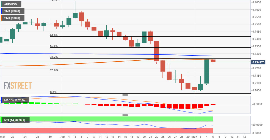 AUD/USD memudarkan lonjakan pasca-NFP dan turun ke terendah baru multi-hari. Kenaikan imbal hasil obligasi AS bertindak sebagai pendorong bagi USD dan memberikan tekanan pada AUD/USD. Penembusan berkelanjutan di bawah terendah bulanan akan menyiapkan panggung untuk penurunan lebih lanjut. Pasangan AUD/USD membalikkan lonjakan awal sesi Amerika Utara ke wilayah 0,7135 dan turun ke terendah baru multi-hari dalam satu jam terakhir. Pasangan mata uang ini terakhir terlihat melayang di sekitar wilayah 0,7065, turun lebih dari 0,60% hari ini. Dolar AS mengalami beberapa aksi jual sebagai reaksi terhadap laporan tenaga kerja AS yang beragam dan semakin menjauhi tertinggi dua dekade yang diraih sebelumnya Jumat ini. NFP menunjukkan bahwa ekonomi AS menambahkan 428 ribu pekerjaan baru di bulan April dibandingkan dengan antisipasi 391 ribu. Namun, data itu diimbangi oleh sedikit kekecewaan dari Pendapatan Per Jam Rata-Rata dan tingkat pengangguran, yang, pada gilirannya, membebani dolar. Meskipun demikian, ekspektasi bahwa The Fed perlu mengambil tindakan yang lebih drastis untuk mengendalikan inflasi membantu membatasi penurunan USD. Faktanya, pasar masih memperkirakan kenaikan suku bunga 200 bps lebih lanjut untuk sisa tahun 2022, yang terbukti dari kenaikan baru dalam imbal hasil obligasi Pemerintah AS. Itu, bersama dengan nada risiko yang lebih lemah, mendorong aliran safe haven menuju dolar dengan mengorbankan dolar Australia yang dianggap lebih berisiko. Dengan penurunan terbaru, pasangan AUD/USD sekarang telah membalikkan kenaikan mingguannya dan sekarang tidak jauh dari terendah bulanan, di sekitar wilayah 0,7030 yang disentuh pada hari Senin. Beberapa tindak lanjut aksi jual akan dilihat sebagai pemicu baru bagi pedagang bearish dan menyeret harga spot ke level psikologis 0,7000. Lintasan ke bawah lebih jauh dapat diperpanjang menuju terendah tahun, di sekitar wilayah 0,6965. level-level teknis AUD/USD Tinjauan Harga terakhir hari ini 0.7067 Perubahan harian hari ini -0.0045 Perubahan harian hari ini % -0.63 Pembukaan harian hari ini 0.7112 Tren SMA 20 Harian 0.7275 SMA 50 Harian 0.7345 SMA 100 Harian 0.7261 SMA 200 Harian 0.7283 Level Tinggi Harian Sebelumnya 0.7267 Rendah Harian Sebelumnya 0.7076 Tinggi Mingguan Sebelumnya 0.7257 Rendah Mingguan Sebelumnya 0.7054 Tinggi Bulanan Sebelumnya 0.7662 Rendah Bulanan Sebelumnya 0.7054 Fibonacci Harian 38,2% 0.7149 Fibonacci Harian 61,8% 0.7194 Pivot Point Harian S1 0.7037 Pivot Point Harian S2 0.6961 Pivot Point Harian S3 0.6846 Pivot Point Harian R1 0.7227 Pivot Point Harian R2 0.7342 Pivot Point Harian R3 0.7418