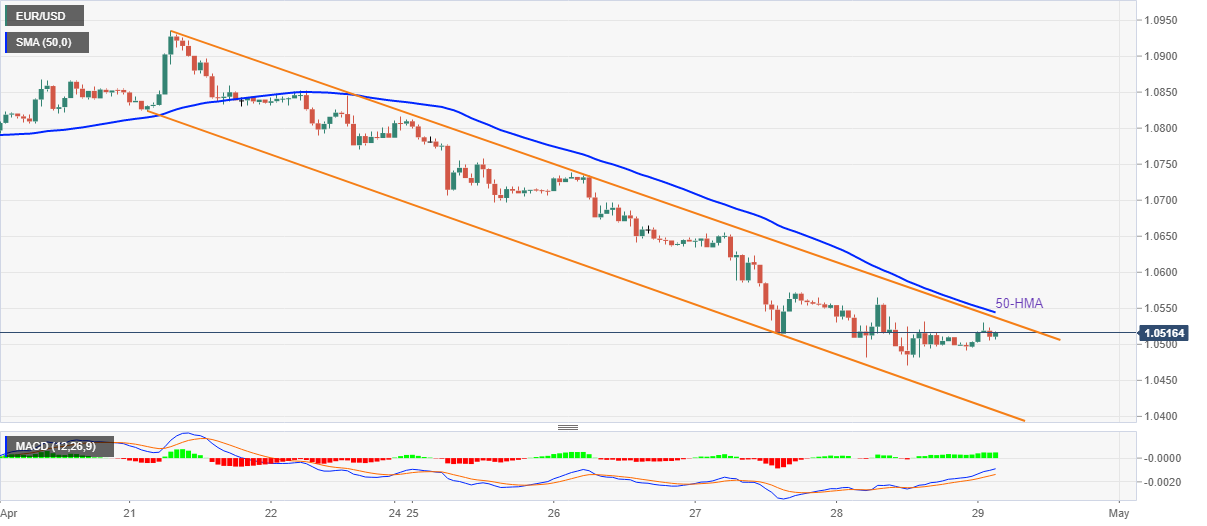 EUR/USD pulih dari terendah lima tahun tetapi tetap berada di dalam pola grafik bearish. MA 50-hari, sinyal MACD bearish menambah kekuatan pada bias ke bawah. RSI oversold pada grafik harian mendukung pullback korektif, beberapa rintangan menguji pembeli. EUR/USD mempertahankan pemulihan sesi Asia dari level-level terendah sejak 2017 di sekitar 1,0520 selama pagi Eropa Jumat ini. Meskipun sinyal MACD bullish baru-baru ini pada grafik per satu jam mendukung pembeli, garis resistance dari saluran tren menurun satu minggu dan MA 50-jam menantang kenaikan lebih lanjut di sekitar 1,0540-45. EUR/USD: Grafik per jam Tren: Bearish Bahkan jika harga naik melewati 1,0545, retracement Fibonacci 161,8% dari kenaikan bulan sebelumnya, dekat 1,0585, akan menantang pembeli EUR/USD. Juga bertindak sebagai filter sisi atas adalah garis support sebelumnya dari November 2021, dekat 1,0600 pada saat berita ini dimuat. Atau, bagian bawah terbaru di sekitar 1,0470 dan garis bawah saluran bearish, di dekat 1,0400, akan menguji penjual jangka pendek. Dalam kasus di mana harga EUR/USD turun lebih jauh di bawah 1,0400, palung 2017 di sekitar 1,0340 akan menjadi titik fokus. EUR/USD: Grafik harian Tren: Tidak dapat dikesampingkan pullback korektif Baca juga: EUR/USD Pulih dari Terendah Lima Tahun Menuju 1,0550 Jelang PDB Zona Euro, Data Inflasi PCE AS level-level teknis EUR/USD Tinjauan Harga terakhir hari ini 1.0516 Perubahan harian hari ini 0.0017 Perubahan harian hari ini % 0.16 Pembukaan harian hari ini 1.0499 Tren SMA 20 Harian 1.0813 SMA 50 Harian 1.0972 SMA 100 Harian 1.1151 SMA 200 Harian 1.1388 Level Tinggi Harian Sebelumnya 1.0566 Rendah Harian Sebelumnya 1.0471 Tinggi Mingguan Sebelumnya 1.0936 Rendah Mingguan Sebelumnya 1.0761 Tinggi Bulanan Sebelumnya 1.1233 Rendah Bulanan Sebelumnya 1.0806 Fibonacci Harian 38,2% 1.0507 Fibonacci Harian 61,8% 1.053 Pivot Point Harian S1 1.0458 Pivot Point Harian S2 1.0418 Pivot Point Harian S3 1.0364 Pivot Point Harian R1 1.0552 Pivot Point Harian R2 1.0606 Pivot Point Harian R3 1.0647