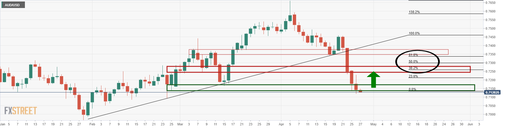 AUD/USD telah naik di atas 0,7170 pada inflasi Australia yang lebih tinggi dari perkiraan sebesar 5,1%. Ini telah meningkatkan kemungkinan sikap hawkish oleh RBA pada bulan Mei. DXY kemungkinan akan menampilkan langkah konsolidasi ke depan setelah pergerakan ke sisi atas yang layak. Pasangan AUD/USD telah pulih dengan tajam karena Biro Statistik Australia telah melaporkan Indeks Harga Konsumen (IHK) triwulanan di 2,1%, lebih tinggi dari konsensus pasar 1,7% dan cetakan sebelumnya 1,3%. Reserve Bank of Australia (RBA) dalam pertemuan kebijakan moneter terakhirnya di minggu pertama April mengumumkan keputusan kenaikan suku bunga bergantung pada data. RBA mendiktekan bahwa para pengambil kebijakannya belum melihat adanya tekanan harga yang dapat memaksa bank sentral untuk menaikkan suku bunga. Inflasi Australia tahunan telah mencapai 5,1%, jauh lebih tinggi dari perkiraan 4,6% dan cetakan sebelumnya 3,5%. Angka 5,1% terlihat cukup tinggi dari target inflasi 2%. Oleh karena itu, para investor harus bersiap untuk sikap hawkish dari RBA dalam pengumuman kebijakan moneter bulan Mei. Sementara itu, indeks dolar AS (DXY) stabil di sekitar 102,35 setelah rally menguat. Fundamental tidak mendikte tanda pembalikan dalam aset ini, namun, profit-booking dapat menyeret DXY yang perkasa lebih rendah. Ekspektasi progresif dari kenaikan suku bunga jumbo oleh Federal Reserve (The Fed) pada bulan Mei mendukung DXY. Pengumuman Ketua The Fed Jerome Powell dalam kesaksiannya di pertemuan Dana Moneter Internasional (IMF) bahwa kenaikan suku bunga 50 basis poin (bp) sudah sangat merusak ketegangan, yang telah meningkatkan daya tarik untuk aset-aset safe haven. Level-Level Teknis AUD/USD Tinjauan Harga terakhir hari ini 0.715 Perubahan harian hari ini 0.0027 Perubahan harian hari ini % 0.38 Pembukaan harian hari ini 0.7123 Tren SMA 20 Harian 0.7415 SMA 50 Harian 0.7357 SMA 100 Harian 0.7264 SMA 200 Harian 0.7293 Level Tinggi Harian Sebelumnya 0.723 Rendah Harian Sebelumnya 0.7118 Tinggi Mingguan Sebelumnya 0.7459 Rendah Mingguan Sebelumnya 0.7234 Tinggi Bulanan Sebelumnya 0.7541 Rendah Bulanan Sebelumnya 0.7165 Fibonacci Harian 38,2% 0.7161 Fibonacci Harian 61,8% 0.7187 Pivot Point Harian S1 0.7084 Pivot Point Harian S2 0.7045 Pivot Point Harian S3 0.6972 Pivot Point Harian R1 0.7196 Pivot Point Harian R2 0.7269 Pivot Point Harian R3 0.7308