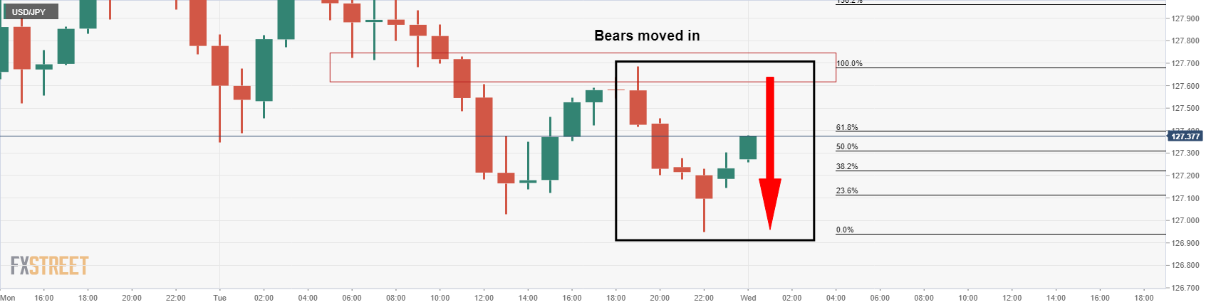 Penjual USD/JPY mengintai tetapi pembeli memegang kendali dalam koreksi yang solid. Harga bisa berada di ambang perpanjangan penurunan lainnya. Sesuai analisis sebelumnya dari sesi New York, harga memang meleleh dari resistance dan pertanyaannya sekarang adalah seberapa jauh harga bisa bertahan? Analisis USD/JPY Sebelumnya "Formasi M adalah pola pembalikan yang telah menarik harga ke garis leher pola tersebut. Hal ini melihat harga mulai melambat dalam koreksi di dekat area rasio 50% dan 61,8%. Oleh karena itu, telah terjadi koreksi yang cukup signifikan untuk menarik para penjual lagi dengan harga diskon yang dapat menyebabkan kelanjutan penurunan." USD/JPY, Pasar Langsung Harga dijual dari garis leher formasi-M tetapi perpanjangan sisi bawahnya dangkal namun kenaikan telah muncul di awal sesi perdagangan di Asia, jadi menjual ke penolakan yang begitu kuat bisa menjadi sia-sia. Koreksi juga telah ditutup di atas harga penutupan hari sebelumnya pada grafik per jam yang membuat pembeli memegang kendali. Namun, harga juga telah terkoreksi ke tingkat pengembalian rata-rata 61,8% dari impuls bearish terbaru yang memberikan bobot pada bias penurunan karena ini dianggap cukup murah untuk memikat para penjual lagi. Di sisi lain, para penjual akan berhati-hati dalam menunggu struktur bearish terbentuk pada waktu yang lebih rendah, seperti grafik 15 dan 5 menit. Dari perspektif harian, para penjual telah bergerak pada pengembalian rata-rata 50% dari impuls bullish harian sebelumnya dan pembentukan formasi M. Oleh karena itu, ada risiko koreksi bullish dan yang bisa segera terjadi. Rasio 61,8%, bagaimanapun, sekarang jauh dan bisa menjadi target yang masuk akal untuk sisi negatifnya.