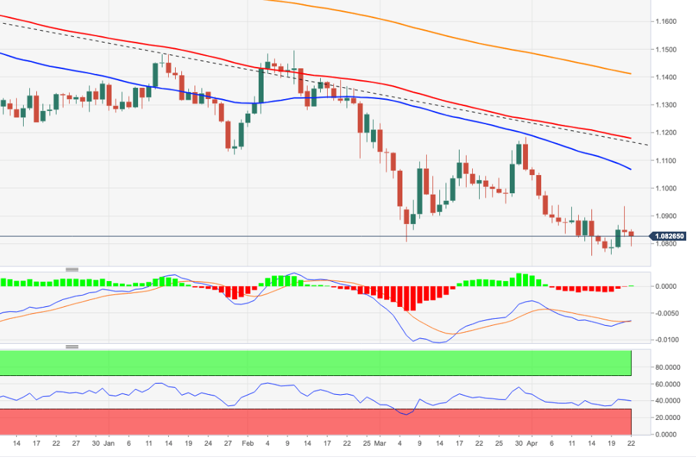 EUR/USD memantul dari terendah di sekitar 1,0790. Imbal hasil obligasi 10-tahun Jerman mendekati tolok ukur 1,00%. IMP Manufaktur flash AS diperkirakan sedikit lebih tinggi di bulan April. Tekanan jual tetap baik dan sehat di sekitar mata uang tunggal dan menjaga EUR/USD tetap di wilayah negatif di sekitar zona 1,0800 pada hari Jumat. EUR/USD dalam penawaran jual di sekitar 1,0800 Tidak ada perubahan pada posisi penawaran jual EUR/USD pada hari Jumat, meskipun berhasil rebound dari penurunan sebelumnya di area 1,0790, selalu di tengah pemulihan tajam dalam greenback dan imbal hasil yang lebih tinggi. Meskipun imbal hasil AS sekarang menyerahkan sebagian dari kenaikan sebelumnya, imbal hasil obligasi 10-tahun Jerman tetap kuat dan secara bertahap mendekati penghalang utama di 1,00%, area yang terakhir dikunjungi pada Juni 2015. Presiden ECB Lagarde berbicara di Washington, D.C. sebelumnya di sesi ini, meskipun dia tidak mengomentari kebijakan moneter. Dalam kalender ekonomi euro, IMP Manufaktur pendahuluan di Jerman dan UME diperkirakan di 54,1 dan 55,3 untuk bulan ini. Di AS, pengukur manufaktur terlihat membaik ke 59,7 pada periode yang sama. Apa yang harus diamati di sekitar EUR Aksi harga EUR/USD menunjukkan penurunan lebih lanjut di bawah support utama 1,0800 pada akhir minggu. Prospek pasangan mata uang ini masih tetap condong ke sisi bearish, selalu dalam menanggapi dinamika dolar, kekhawatiran geopolitik dan divergensi The Fed-ECB. Seperti biasa, kantong-kantong penguatan dalam mata uang tunggal akan tampak diperkuat oleh spekulasi ECB bisa menaikkan suku bunga sebelum akhir tahun, sementara imbal hasil Jerman yang lebih tinggi, kenaikan inflasi, laju pemulihan ekonomi yang layak dan hasil menguntungkan dari fundamental utama di kawasan ini juga mendukung rebound euro. Peristiwa penting di kawasan euro minggu ini: IMP Manufaktur, Jasa Flash UME, Jerman (Jumat). Masalah utama yang memengaruhi: Pemulihan ekonomi asimetris pasca-pandemi di kawasan euro. Spekulasi pengetatan/tapering ECBnanti tahun ini. Putaran kedua pemilihan presiden di Prancis (24 April). Dampak konflik geopolitik di Ukraina pada prospek pertumbuhan ekonomi kawasan. Level-level EUR/USD yang harus diperhatikan Sejauh ini, spot turun 0,19% di 1,0809 dan penembusan di bawah 1,0757 (terendah 2022 pada 14 April) akan menargetkan 1,0727 (terendah 24 April 2020) kemudian 1,0635 (terendah 2020 pada 23 Maret). Untuk sisi atas, rintangan berikutnya muncul di 1,0936 (tertinggi mingguan 21 April) diikuti oleh 1,1000 (angka bulat) dan 1,1064 (SMA 55-hari).