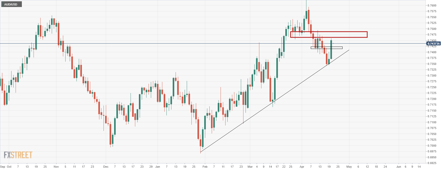 Menurut pendapat Lee Sue Ann dan Quek Ser Leang, Ahli Strategi Valas di UOB Group, AUD/USD sekarang dapat diperdagangkan antara 0,7370 dan 0,7495 dalam jangka pendek. Kutipan Utama Pandangan 24 jam: “Meskipun kami memperkirakan AUD yang lebih kuat kemarin, kami berpandangan bahwa 'peningkatan apa pun tidak mungkin menembus resistance kuat di 0,7420'. Namun, AUD menembus 0,7420 dan naik ke 0,7457 sebelum turun. Kenaikan cepat tampaknya berjalan di depan dirinya sendiri dan AUD tidak mungkin untuk naik lebih jauh. Dari sini, AUD lebih cenderung diperdagangkan sideways antara 0,7400 dan 0,7455." 1-3 minggu ke depan: “Pada hari Selasa (19 Apr, spot di 0,7355), kami menyoroti bahwa 'momentum ke bawah telah meningkat sedikit dan peluang AUD untuk menembus 0,7325 telah meningkat'. Kemarin (20 April), AUD rebound dan menembus level 'resistance kuat' kami di 0,7420 (tertinggi 0,7457). Momentum ke bawah sedikit banyak telah hilang dan AUD kemungkinan akan diperdagangkan sideways dari sini, diperkirakan berada dalam kisaran 0,7370/0,7495."