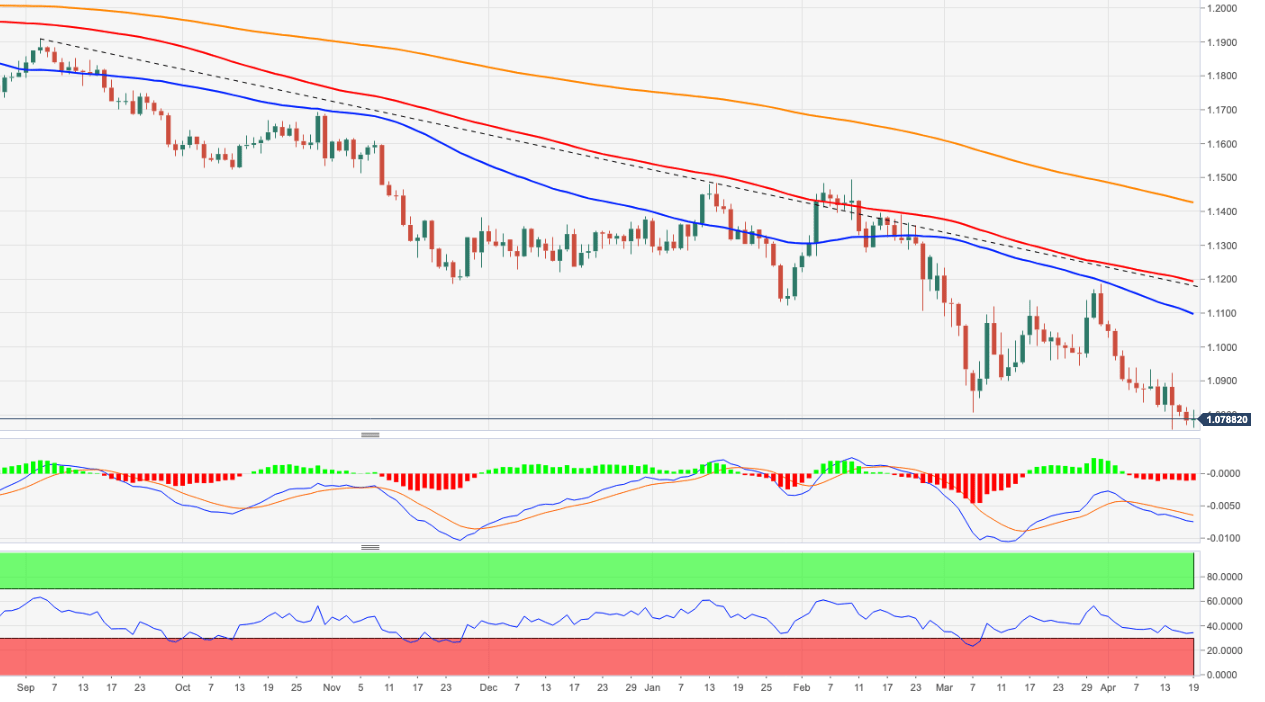 EUR/USD membalikkan penurunan sebelumnya ke 1,0760 dan mendapatkan kembali 1,0800. Kunjungan lainnya ke terendah 2022 di dekat 1,0750 tetap mungkin. EUR/USD mendapatkan kembali senyumnya dan membalikkan tiga penurunan harian berturut-turutnya pada hari Selasa. Mengingat aksi harga yang sedang berlangsung, penurunan ekstra pada pasangan mata uang ini tetap dalam proses di horizon jangka pendek. Terhadap keadaan itu, penembusan di bawah terendah 2022 sejauh ini di 1,0757 (14 April) akan membuka kemungkinan kunjungan singkat ke 1,0727 (terendah 24 April 2020) sebelum terendah 2020 di 1,0635 (23 Maret). Ketika di bawah SMA 200-hari, hari ini di 1,1424, prospek pasangan mata uang ini diperkirakan akan tetap negatif. Grafik harian EUR/USD level-level teknis EUR/USD Tinjauan Harga terakhir hari ini 1.0788 Perubahan harian hari ini 0.0005 Perubahan harian hari ini % 0.05 Pembukaan harian hari ini 1.0783 Tren SMA 20 Harian 1.0945 SMA 50 Harian 1.1079 SMA 100 Harian 1.1199 SMA 200 Harian 1.1431 Level Tinggi Harian Sebelumnya 1.0822 Rendah Harian Sebelumnya 1.077 Tinggi Mingguan Sebelumnya 1.0933 Rendah Mingguan Sebelumnya 1.0758 Tinggi Bulanan Sebelumnya 1.1233 Rendah Bulanan Sebelumnya 1.0806 Fibonacci Harian 38,2% 1.079 Fibonacci Harian 61,8% 1.0802 Pivot Point Harian S1 1.0762 Pivot Point Harian S2 1.074 Pivot Point Harian S3 1.071 Pivot Point Harian R1 1.0813 Pivot Point Harian R2 1.0843 Pivot Point Harian R3 1.0865