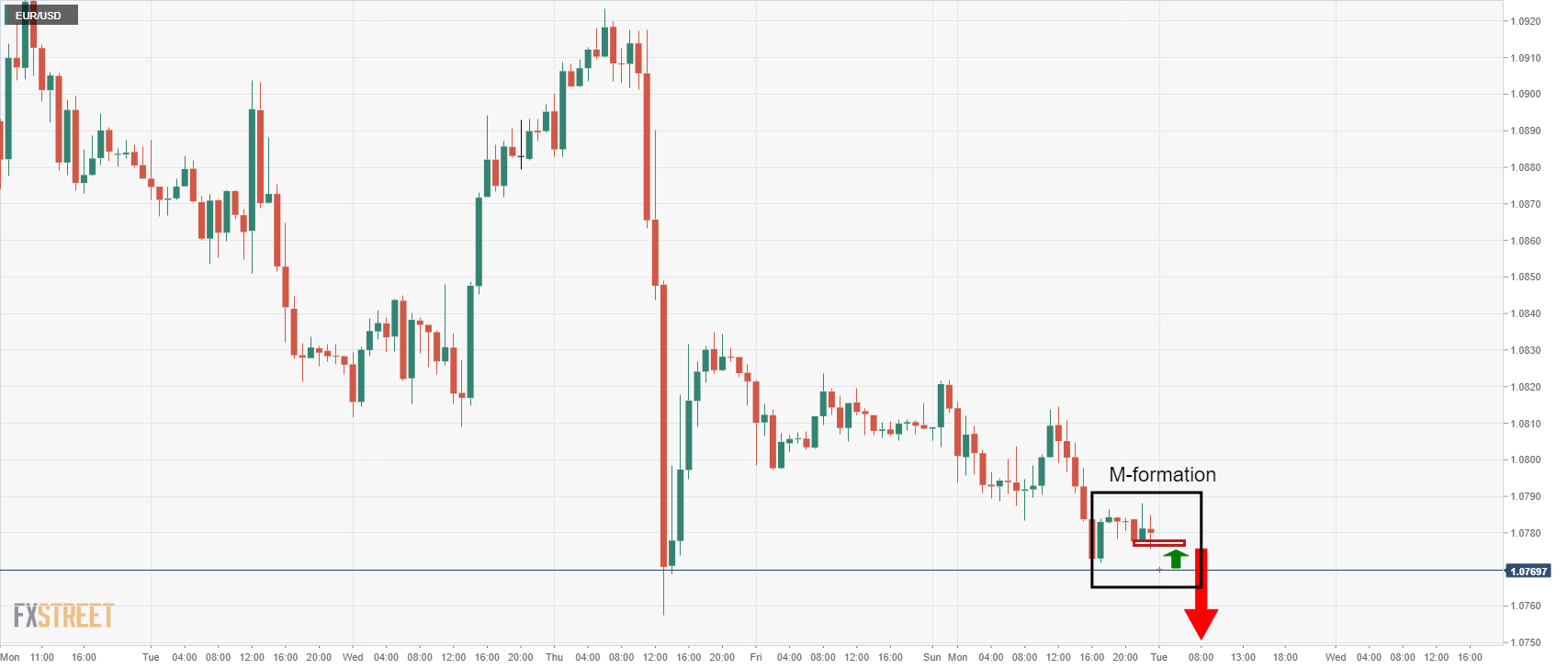 Penjual EUR/USD memegang kendali ke posisi terendah baru jangka panjang. Sementara itu ada prospek bullish yang perlu dipertimbangkan. EUR/USD telah tertekan oleh Dolar AS yang kuat pada awal pekan ini dan harga membuat posisi terendah baru dalam siklus penjual. Berikut ini menggambarkan struktur pasar saat ini dari perspektif per jam dan sampai ke grafik mingguan saat bergerak pada struktur support jangka panjang. Grafik EUR/USD per jam Grafik per jam melihat harga di bawah tekanan tetapi formasi M menawarkan prospek koreksi sementara itu sebelum penurunan lebih lanjut. Grafik mingguan EUR/USD Grafik mingguan berada dalam posisi yang sama dengan formasi M yang diharapkan membawa pembeli untuk menguji support lama dan garis leher pola.