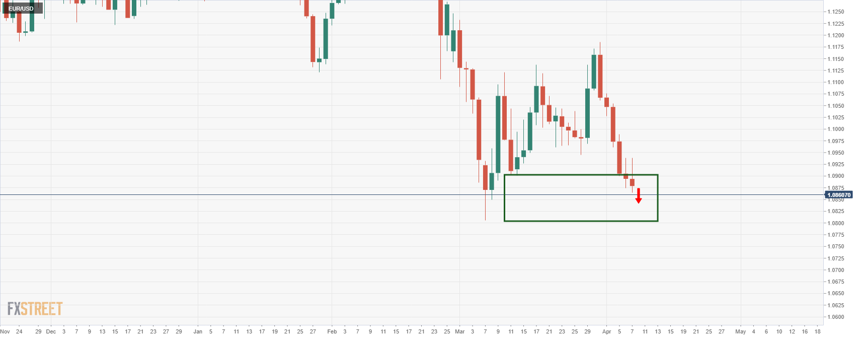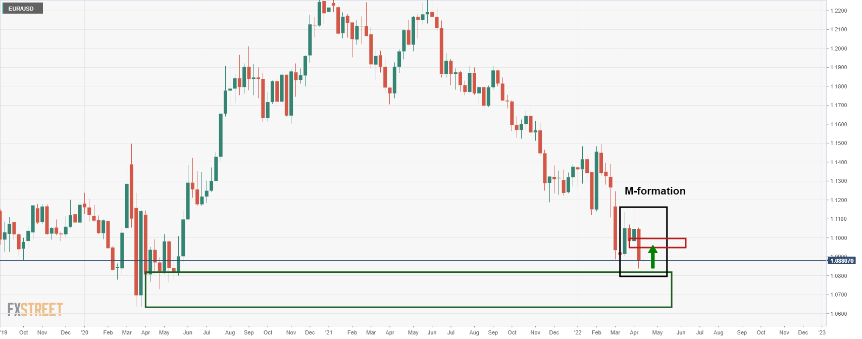 EUR/USD bertemu tingkat support kritis. Pembeli melihat koreksi yang signifikan untuk hari-hari mendatang. EUR/USD kembali datar di pertengahan sesi Asia karena harga bergerak kembali sejalan dengan tren dominan. Penjual berkeliaran tetapi grafik mingguan dan harian menawarkan kasus yang menarik untuk koreksi bullish yang signifikan untuk hari-hari mendatang. Grafik mingguan EUR/USD Harga bertemu area support mingguan sementara formasi M bisa menjadi sinyal untuk pembeli mengantisipasi kembali ke garis leher pola. Grafik harian EUR/USD Dari perspektif harian, level Fibonacci retracement 38,2% berada di support sebelumnya di dekat 1,0950, area resistensi potensial.