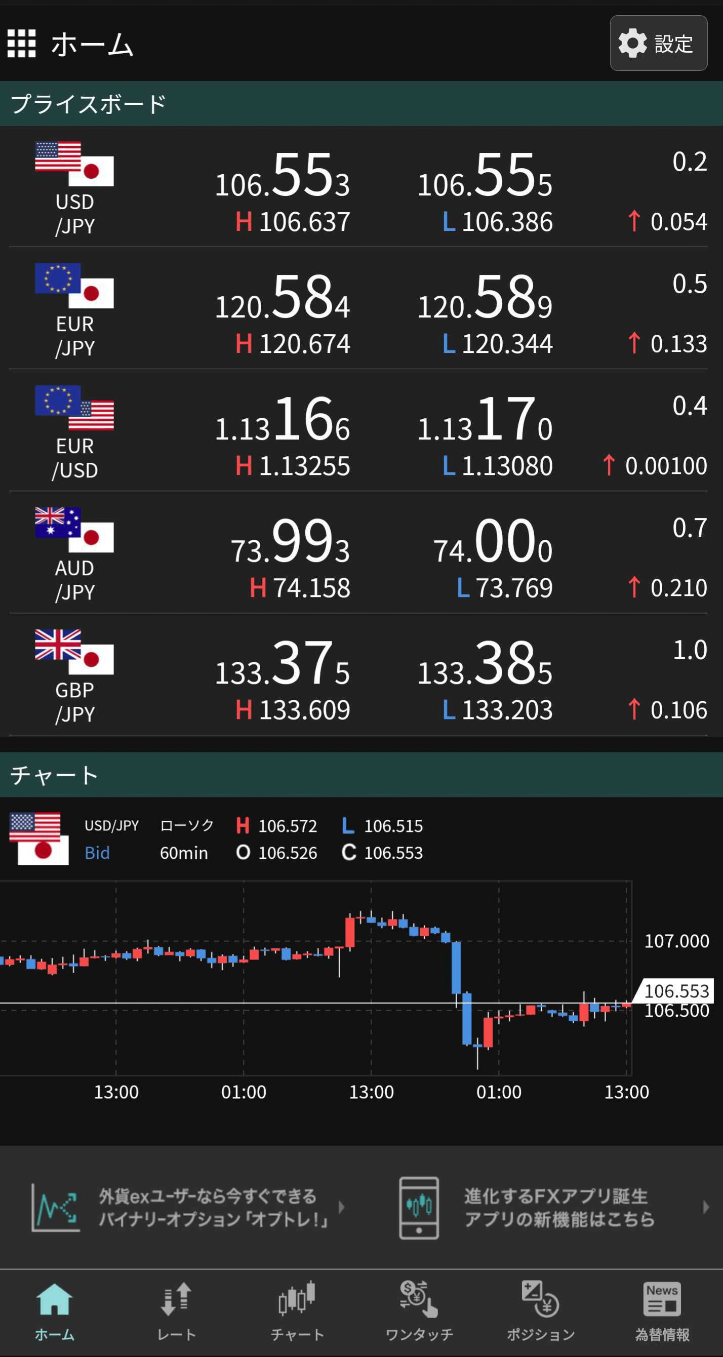 20日の為替市場の四本値(ドル円・ユーロドル・ユーロ円)