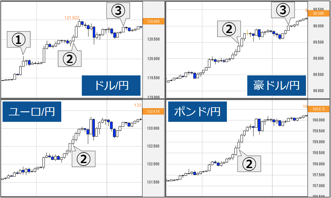 5日の為替市場の四本値(ポンド円・豪ドル円・カナダ円)