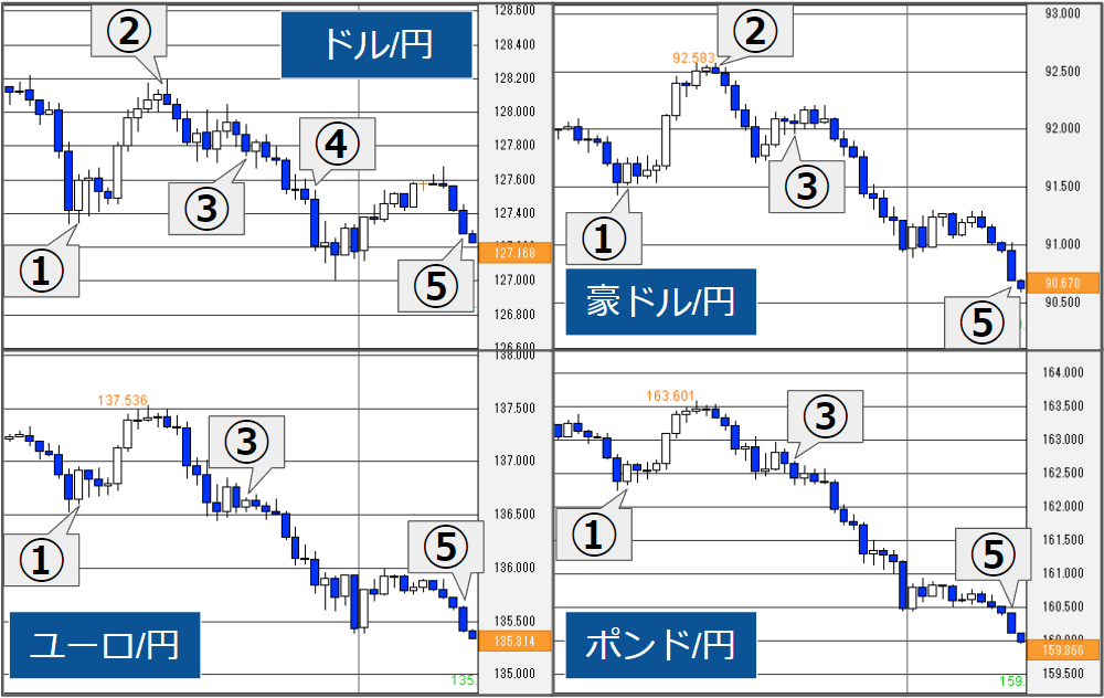 ドル円 ユーロドル ユーロ円始値 134.95 1.0523 142.05高値 135.40 1.0571 142.85安値 134.35 1.0512 141.40終値 135.23 1.0553 142.79