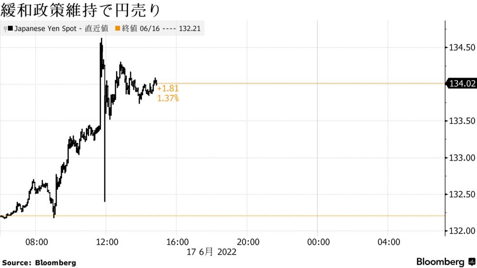 - 17/06/2022ドル円は134円台に、日銀の緩和維持を受...